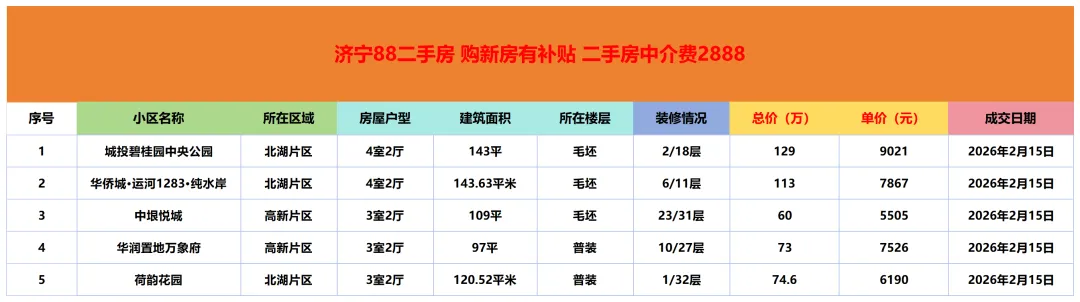 济宁二手房成交市场价参考|2月15日