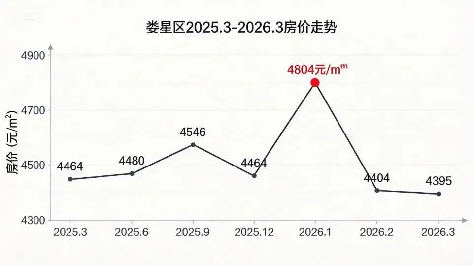 看数据,2026年1月娄星区二手房挂牌均价约4804元/㎡,相比去年高点确实有回落 。