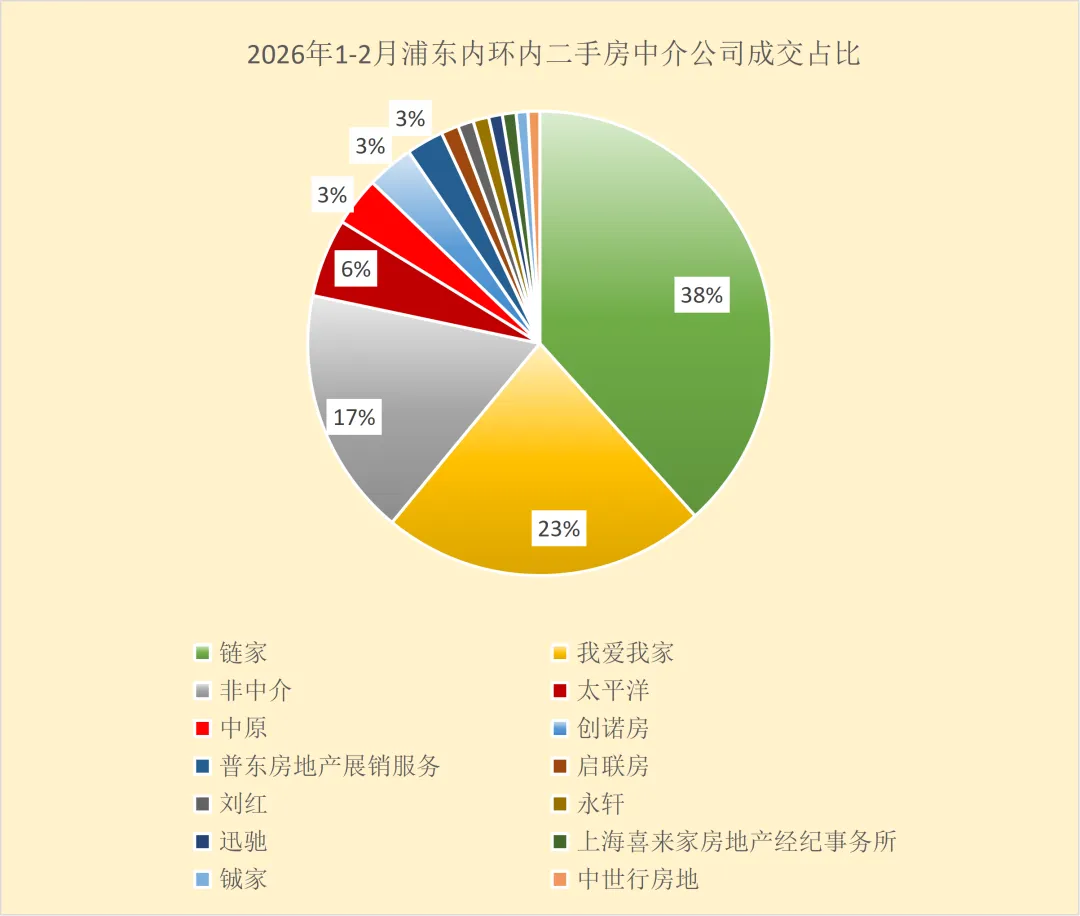根据网签数据分析,2026年1-2月浦东内环以内二手房共成交890套,剔除非中介(亲属间过户、手拉手交易等)交易127套后,