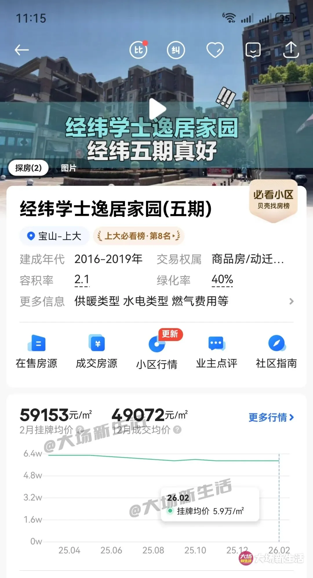 据贝壳找房APP显示,目前学士逸居2月挂牌均价在59153元/平方,12月成交均价在49072元/平方。