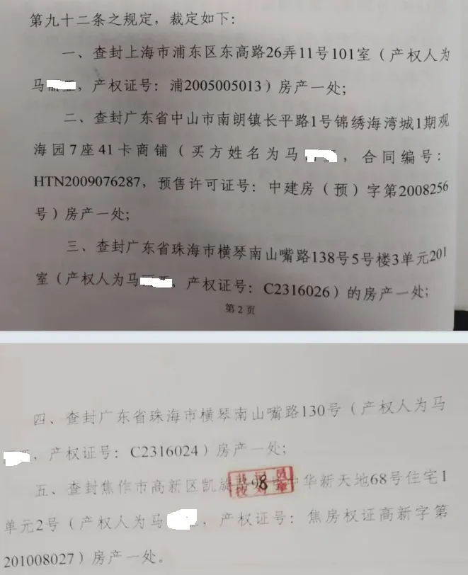 据曹先生介绍,他与马女士于1992 年底开始共同生活,1993 年办理结婚登记并举行结婚仪式,共同生活近二十年间购置了上海、珠海、中山、焦作等地多处房产,还共同经营公司。2011 年 7 月,因夫妻感情破裂,曹先生向焦作市山阳区人民法院提起离婚诉讼,并申请财产保全。2011年7月27日,焦作市山阳区人民法院根据曹先生的财产保全申请,依法作出(2011)山民初字第573号民事裁定书,查封了马女士名下位于上海浦东东高路、珠海横琴南山嘴路等地的五套房产。然而,就在案件审理期间,马女士竟于2011年下半年将其中两套已被查封的房产——上海浦东住宅和珠海横琴住宅——悄然出售,所得款项去向不明。曹先生多次向法院提出异议,要求追究马女士违法变卖查封财产的责任,并主张该部分房产价值应作为共同财产予以分割。但令人匪夷所思的是,一审法院未对马女士私自出售查封财产做出任何处罚,反而认定“被告私自卖掉的两套房产的房款宜归被告马女士所有”,进而判决“被告私自卖掉的上海和珠海的两套房产的房款归被告马女士所有”;更离谱的是,二审法院竟然认为“现双方诉争的五套房屋中有两套已被马女士卖掉,已经不存在,因此,该两套房屋不存在分割问题”。将被马女士私自卖掉的法院查封房产直接排除在财产分割范围之外,既未责令追回售房款,也未对马女士采取任何强制措施或处罚。(上为一审、二审判决书截图)《中华人民共和国民事诉讼法》第一百一十四条规定,隐藏、转移、变卖已被查封的财产,法院可对行为人予以罚款、拘留;构成犯罪的,依法追究刑事责任。而本案中,法院对如此明显的违法行为视若无睹,不仅放纵了当事人藐视司法权威的行为,更实质性剥夺了原告的财产权益。“这不是‘房屋不存在’,而是‘法院不想管’。”曹先生的一位律师朋友说,“查封令若可随意违反而不受惩处,司法保全制度将沦为一纸空文。”二、关键《协议书》疑点重重,法官却推定真实有效