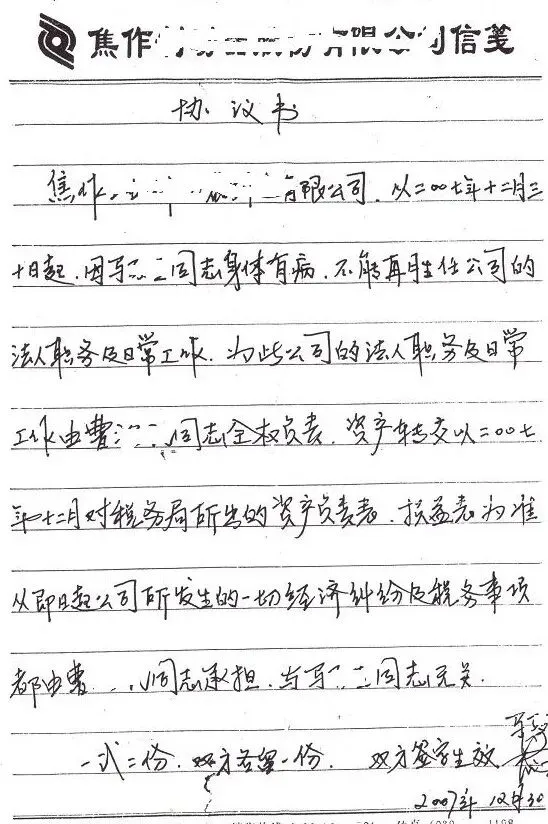 案件另一重大争议焦点,是一份署名为“2007年”的《协议书》。马女士在二审中突然提交该文件,声称双方曾约定:“工厂90%归曹先生,所有房产归马女士”。正是凭借这份协议,二审法院推翻了一审判决,将原本判归曹先生的珠海商铺等资产全部改判给马女士,仅保留一套焦作住宅。但曹先生坚决否认该协议的真实性。他指出:自己从未签署过包含“所有房产归马女士”字样的协议;其手中持有的同一份协议复印件并无此内容;协议上的签名和手印均非本人所为;文字存在明显后期添加痕迹,墨色、笔迹与正文不一致。但主审法官无视曹先生的意见,以曹先生没有提供协议原件为由,推定马女士提供的该协议真实有效。(上为曹先生提供的协议,为复印件;下为马女士提供的协议,为原件)三、司法公信力何以维系?