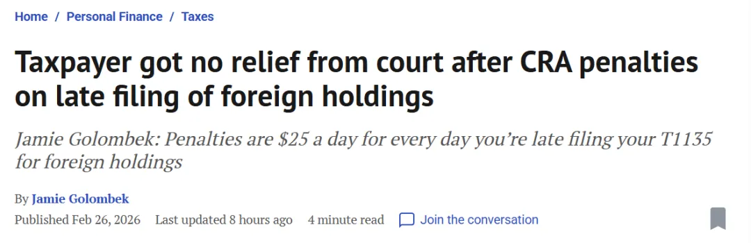 最近,《金融邮报》报道了一名BC省纳税人的遭遇。他因2021和2022年未按时提交T1135,被罚$4500元外加利息。于是,这位纳税人先是向CRA申请减免,理由是当年报税时遇到了“技术故障”,还称这笔罚款给他造成了“财务困难”。