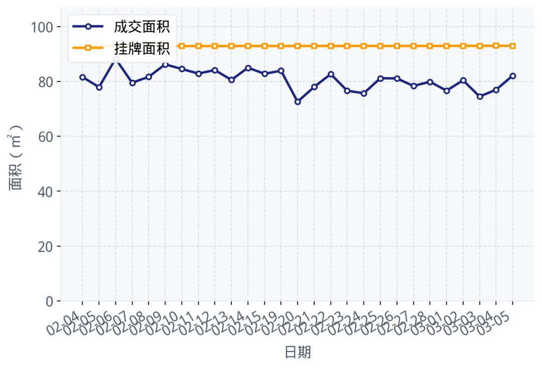 成交平均面积与挂牌平均面积对比趋势(近30天)