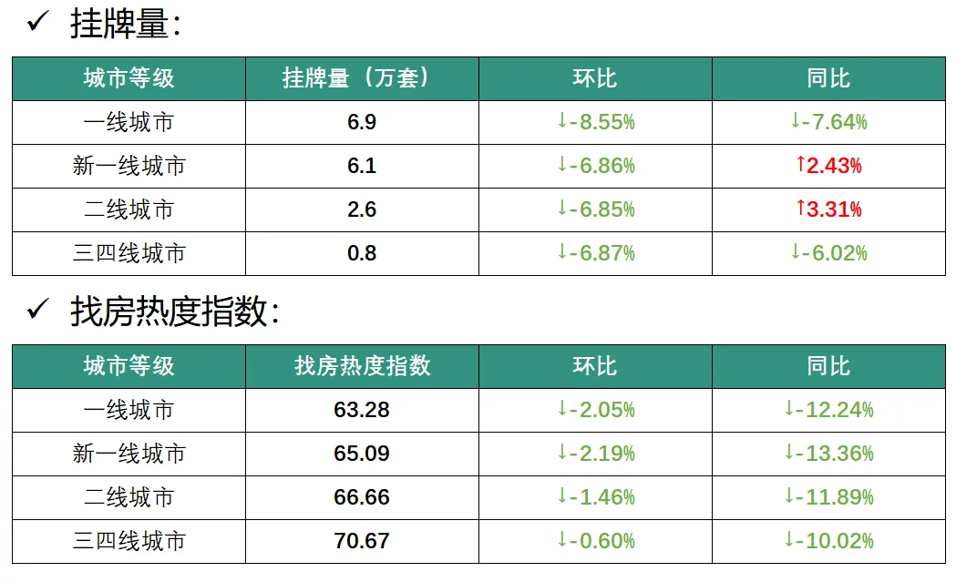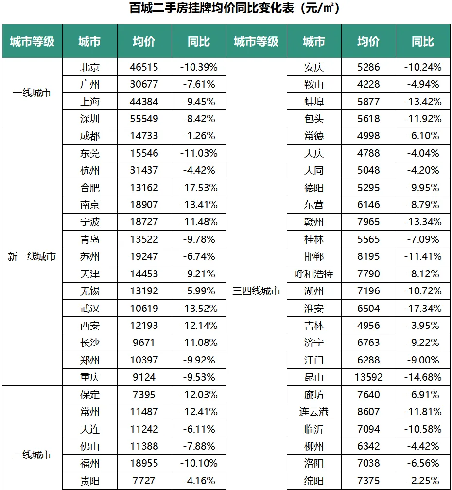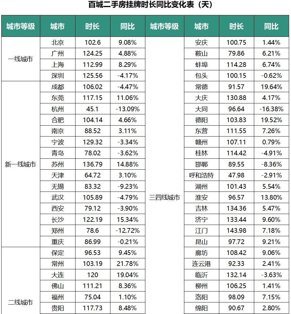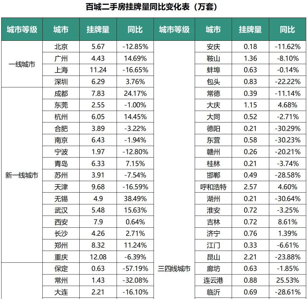 一、百城二手房挂牌量