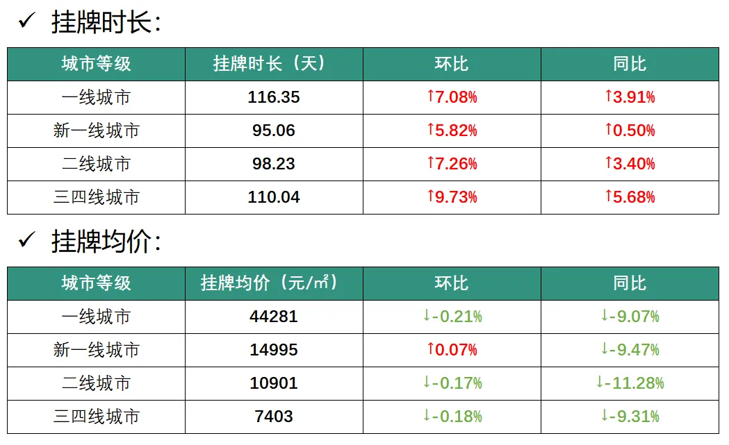 从同比变化看,各能级城市挂牌时长呈现显著分化。一线城市增长TOP(按同比增幅从高到低):北京(+9.08%)、上海(+8.29%)、广州(+4.88%)。一线城市下降 TOP(按同比降幅从大到小):深圳(-4.17%)。新一线城市增长 TOP(按同比增幅从高到低):长沙(+15.34%)、苏州(+14.88%)、东莞(+11.06%)、佛山(+8.36%)、南京(+3.11%)、天津(+3.10%)。新一线城市下降 TOP(按同比降幅从大到小):杭州(-13.09%)、郑州(-12.72%)、武汉(-4.79%)、成都(-4.47%)、西安(-3.90%)、青岛(-3.62%)、宁波(-3.34%)、沈阳(-2.64%)、重庆(-0.21%)。二线城市增长 TOP(按同比增幅从高到低):泉州(+24.42%)、常州(+21.78%)、大连(+19.04%)、惠州(+18.41%)、长春(+17.55%)、绍兴(+16.26%)。