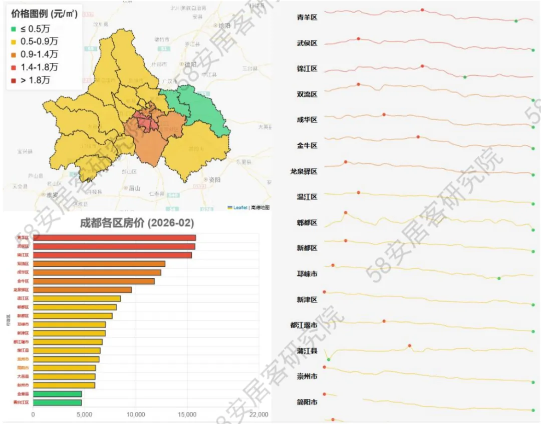 城市分化规律显示,高能级城市内部呈现"价格基数高、跌幅分化大" 特征,一线城市中北京、上海跌幅居前,新一线城市中强省会及核心城市相对抗跌,成都、沈阳、杭州同比跌幅均低于 5%,而武汉、南京等前期热点城市跌幅超 13%;低能级城市整体跌幅相对温和但缺乏上涨动力,市场调整呈现从核心城市向外围扩散后逐步企稳的态势。
