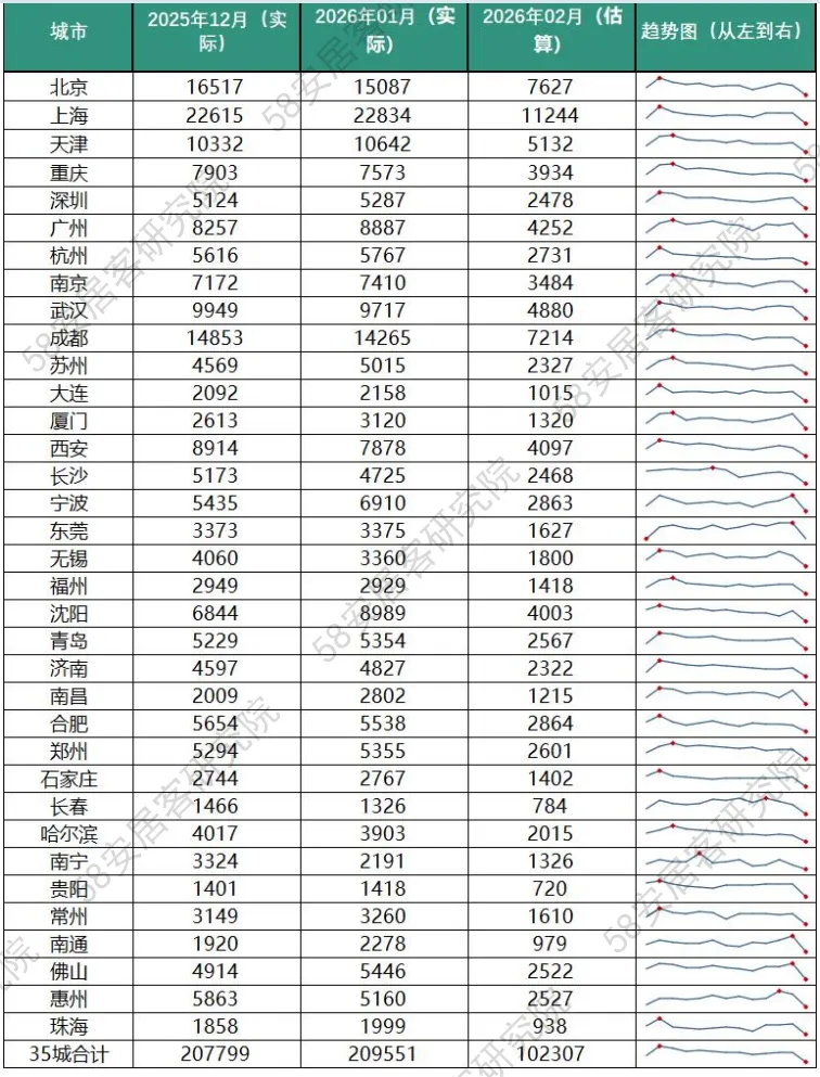 政策端,以上海"沪七条" 为标志,一线城市限购进入实质性松动阶段,公积金政策创新成为地方施策主抓手,政策工具箱向"因区施策" 深化;短期来看,春节后传统淡季效应叠加政策传导时滞,市场或维持震荡盘整,核心城市限购松绑有望加速需求释放;中长期而言,2026 年上半年将成为观察政策效能与市场底部确认的关键窗口,市场真正回暖取决于宏观经济复苏、居民收入预期改善与房价止跌信号的共振,高能级城市或率先迎来边际改善,而低能级城市仍需依赖持续政策呵护以巩固需求基本盘,城市基本面分化将主导未来二手房市场的流动性格局与价格修复路径。