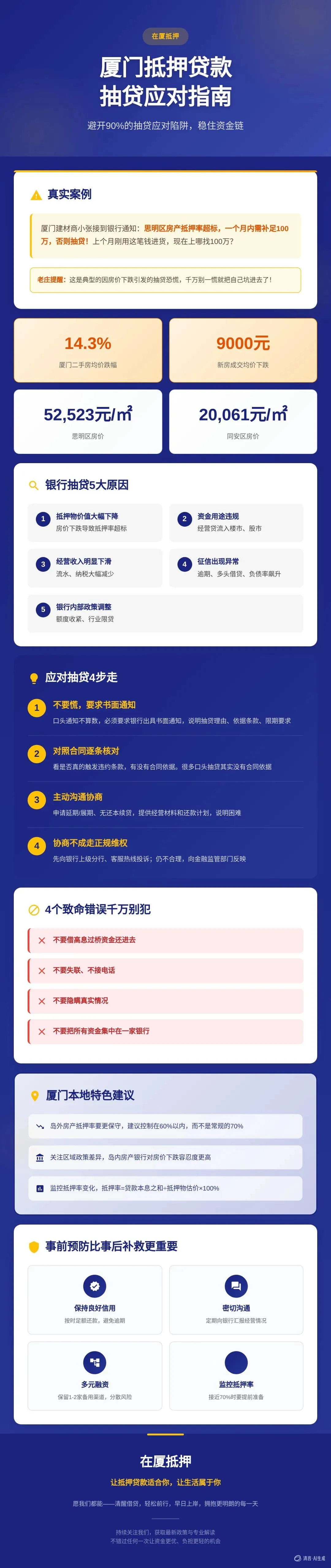 抵押物价值大幅下降——这是当前厦门市场最常见的原因。你想想,厦门二手房均价从2024年1月的3.78万元/㎡跌到9月的2.93万元/㎡,跌幅达14.3%;新房成交均价从2023年的近4.3万/㎡下降至2024年的3.4万/㎡,下跌超9000元/㎡。房价一跌,抵押率自然就上去了。