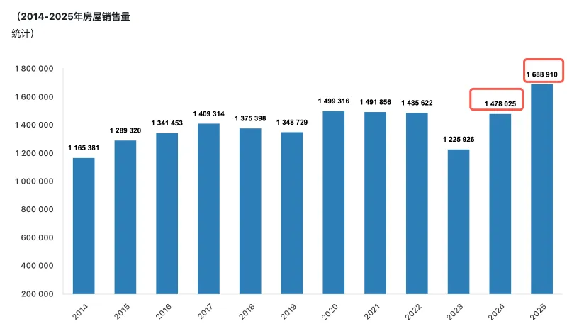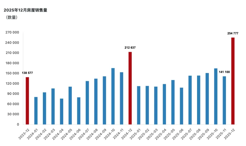 仅2025年12月单月成交就达到254,777套,环比增长80%以上。这并不是外资炒作,而是本地购买力回归 + 降息预期提前释放。