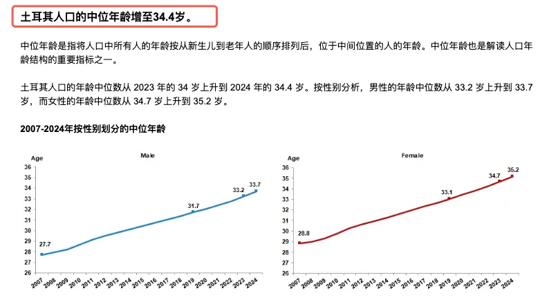 土耳其人口平均年龄约34岁,年轻人口比例高。
