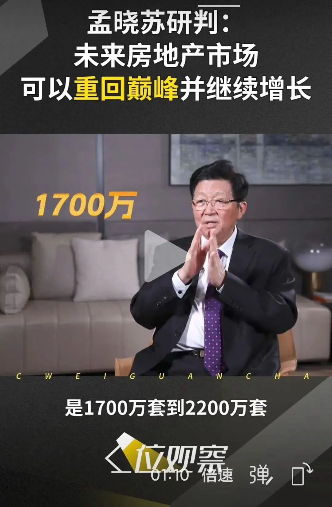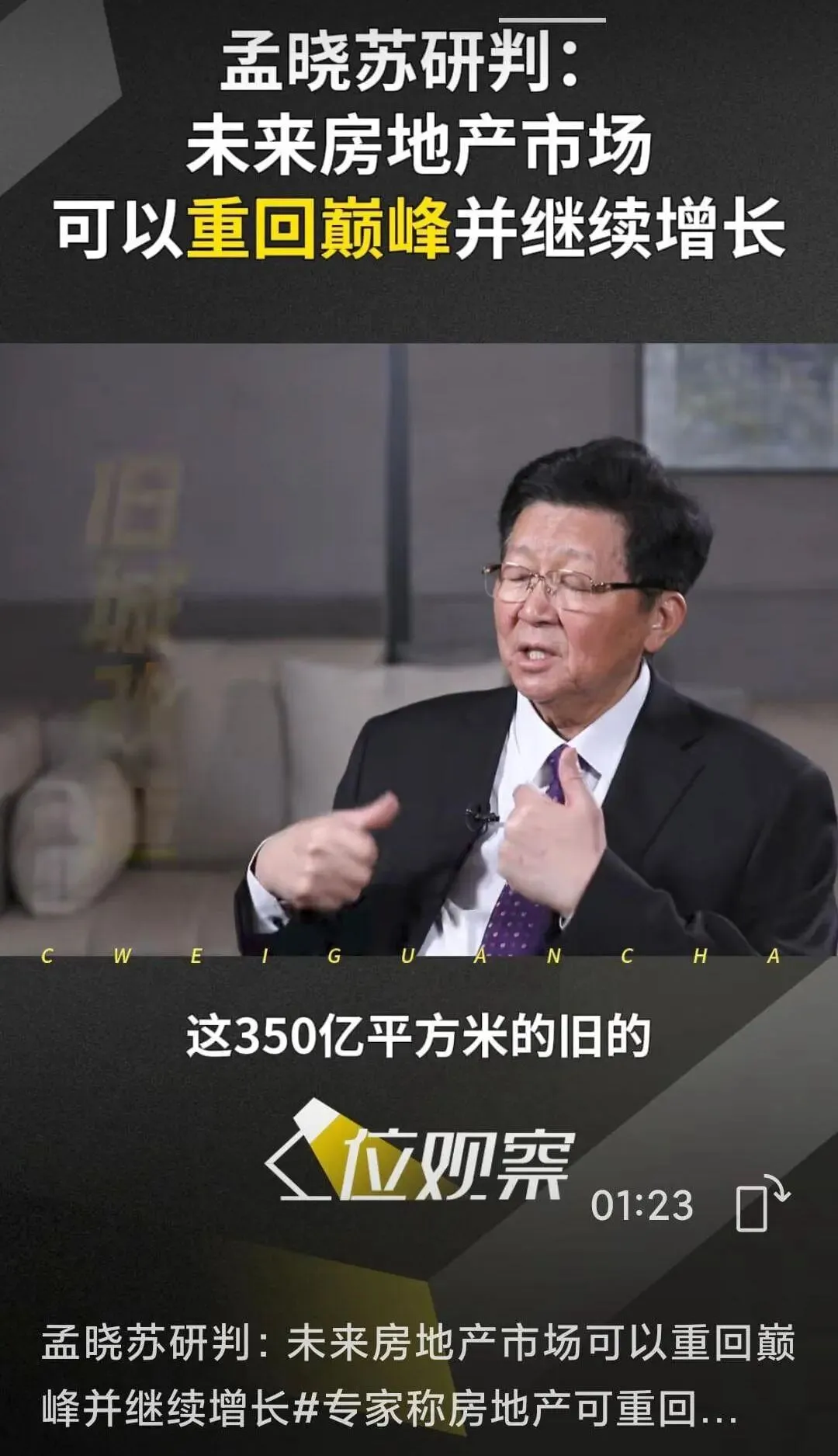最近刷到孟晓苏老师的发言,他老人家说未来房地产能重回巅峰、持续增长。