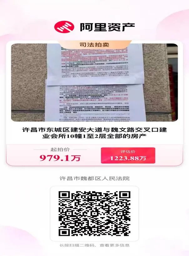推介房产位于河南省许昌市东城区建安大道与魏文路交叉口建业会所10幢1至2层全部办公用房。房屋规划用途为办公用房,建筑面积为 1171.18平方米,房屋结构为混合结构,房屋总层数为2层。评估总价1223.88万元,一拍起拍总价979.10万元,均价约8000元/㎡。