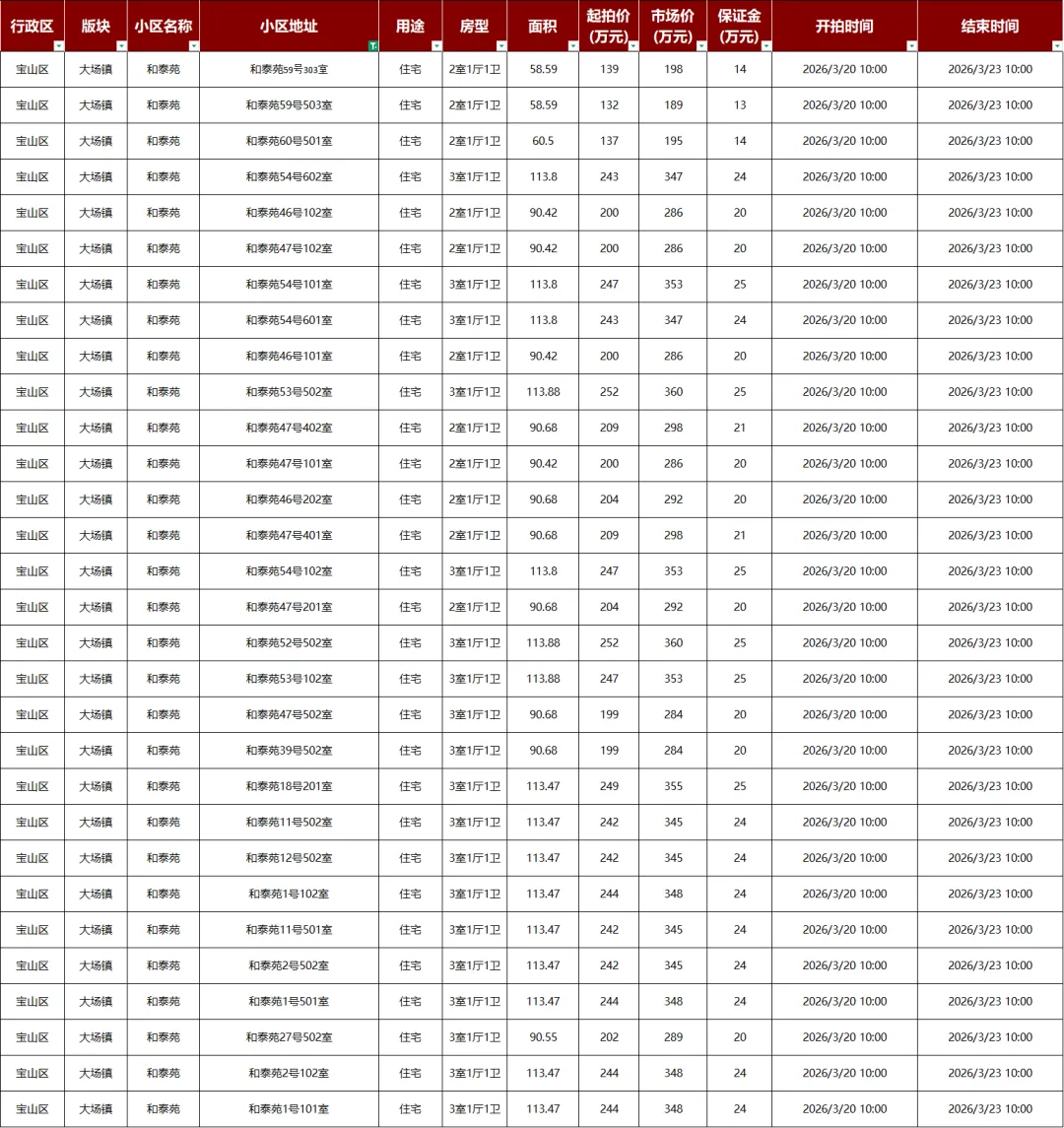 【宝山-大场镇】和泰苑30套优质房源-一拍