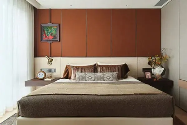步履不停,来到了卧室空间。在进入的一刹那间,只用了三秒钟,就爱上了这个简雅的空间了。红白的床头墙,简致的大床,简雅的橱柜,一并勾绘出了温厚的卧室空间。在这一派风情无限的卧室里,让人宛如是暂别了都市喧哗,好似一艘潜水艇,带领着来到了海底两万里,静谧安祥了。在这柔韵细绵之间,尽享和谐韵味。这间卧室,也不落俗套,不落窠臼,让人久看不厌,不舍离开。这婧雅的卧室里,流露出了家生活的俊雅情调,让Anne总能酣然入梦,抛却烦恼,消解疲劳了。