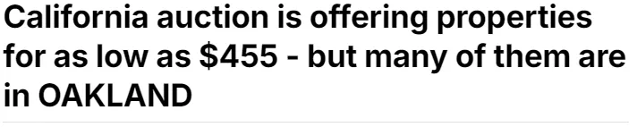 “捡漏”还是“踩雷”? 加州房产起拍价455美元,但全在奥克兰——犯罪率飙升21%的那种……