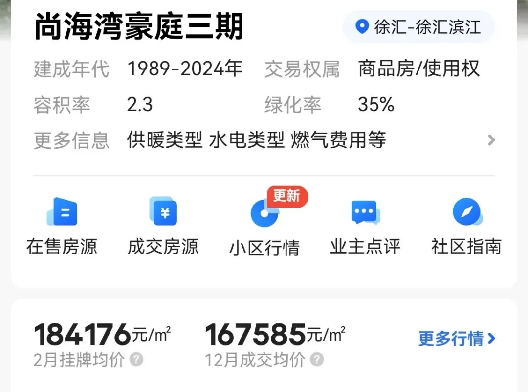 贝壳找房数据显示,直接距离安澜上海约1.2公里的尚海湾豪庭三期目前挂牌价18.4万每平,去年12月实际成交均价16.7万每平。