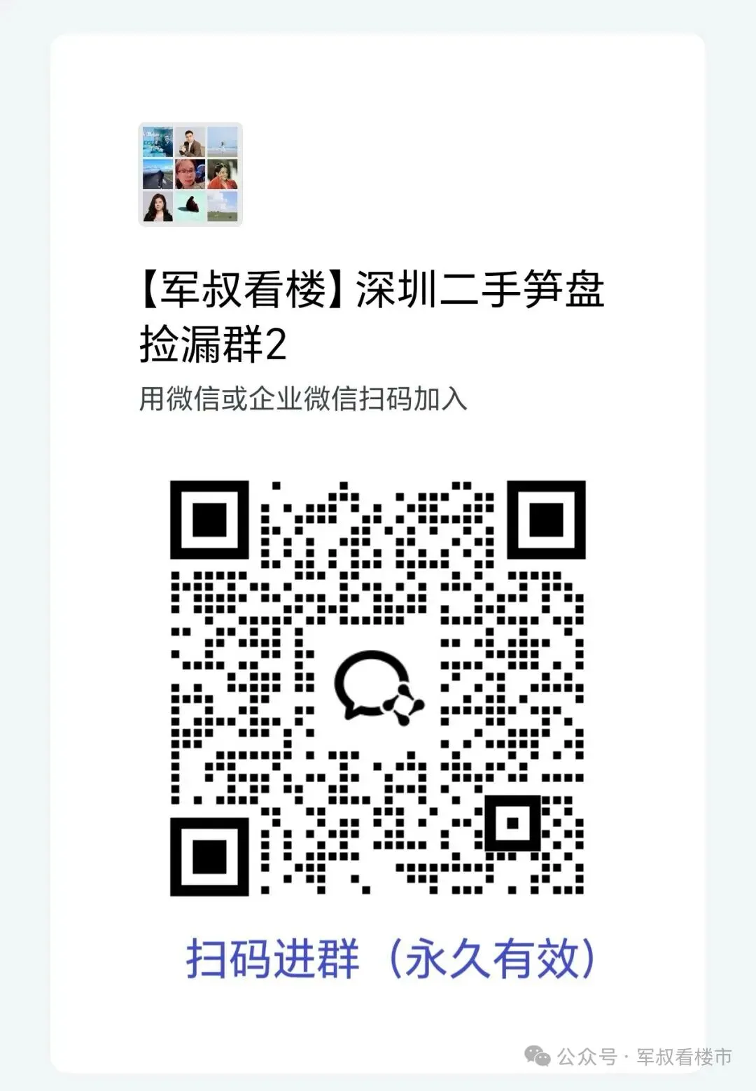 想在南山买二手房的朋友,南山二手笋盘捡漏群专属通道已开放,扫码即刻进群,一手笋盘、价格走势、片区攻略全掌握,买房少走弯路,精准蹲守高性价比好房!群内专属福利全解锁👇✅ 南山各片区实时笋盘推送,业主急售、低于市场价房源优先享✅ 2025、2026南山二手成交数据、各板块价格走势独家解析✅ 专业置业答疑,户型、学区、税费、砍价技巧一对一交流✅ 群友专属看房资源,优质房源抢先对接,避开中介套路不管你想冲深圳湾、后海的核心改善盘,南二外以及育才学区房、刚需好房,进群就能跟上南山二手市场节奏,抓住最佳捡漏时机!📌进群方式:扫描下方二维码,即刻加入南山二手笋盘捡漏群(群内人数有限,满员即关,手慢无!)