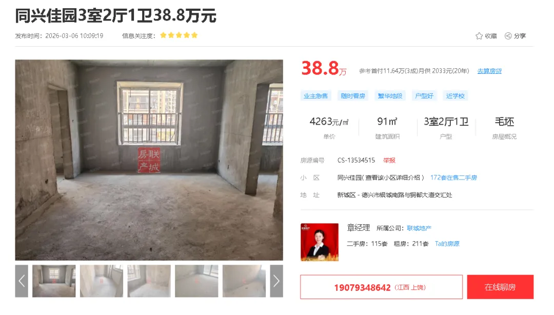 【德兴房产】同兴佳园3室2厅1卫仅需38.8万元,近城南小学、幼儿园,菜市场、超市,生活方便