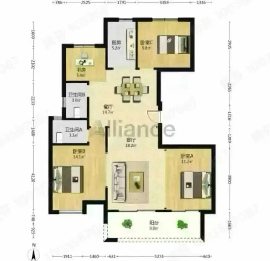 6.【环北西区】现浇房96平方,黄金楼层,精装修,3房3开朝南 带储藏室 满两年,不占学位 报价💰118万
