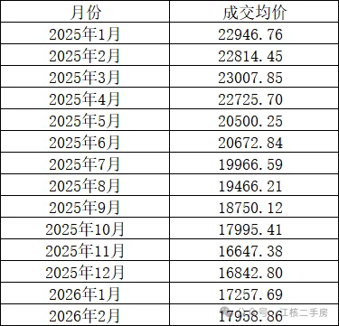 众所周知,江核二手房市场从去年年末至今年年初,开启了一波“反弹模式”,不仅屡次出现单月成交破百的纪录,成交价格也有明显回调。据相关中介媒体的数据统计,2026年2月江核二手房成交均价接近18000元/㎡,几乎回到了去年10月份的水准。