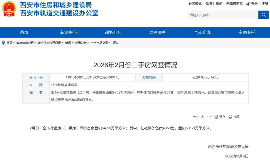 2月份,全市存量房(二手房)网签备案面积54.59万平方米;其中,住宅网签备案4859套,面积50.63万平方米。