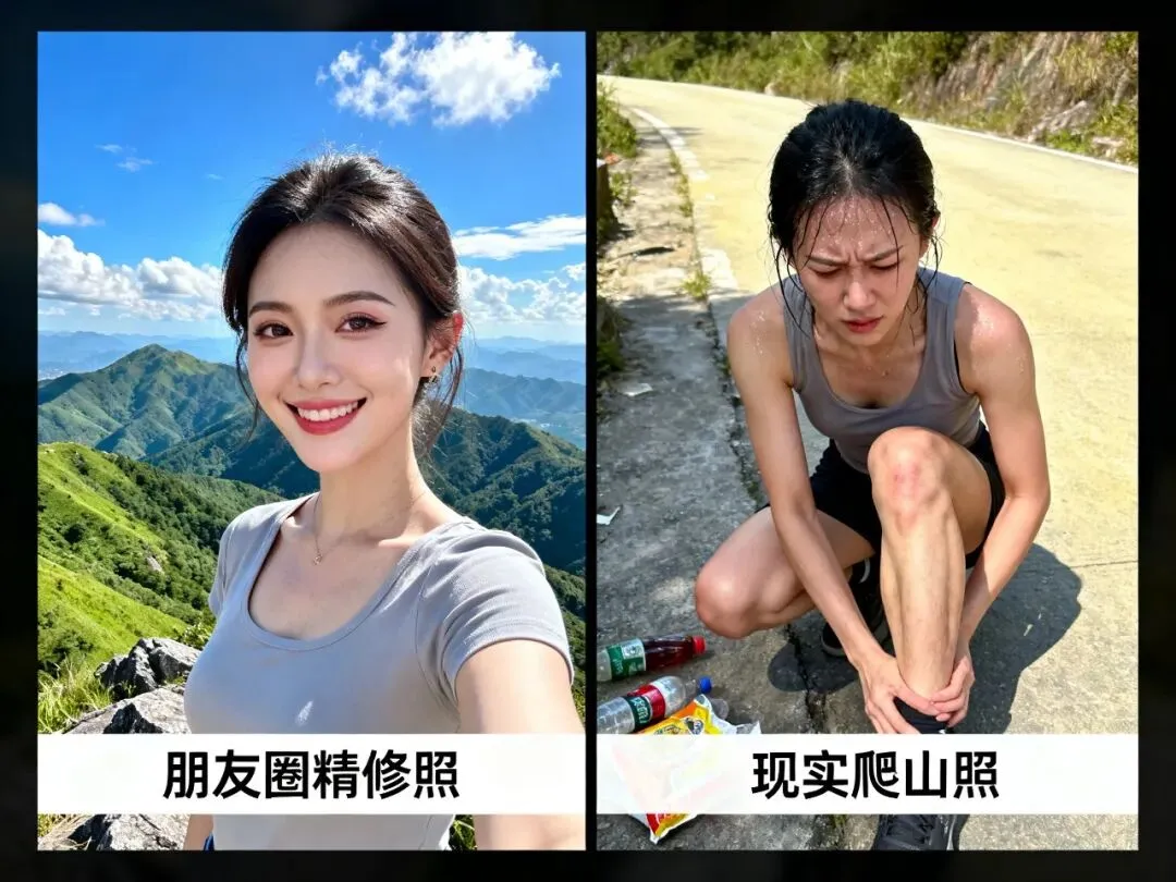 上周我试图“首付”一座离家130公里的山,起了个大早,开了俩小时车,又爬了仨小时台阶,才勉强在山顶拍了张气喘吁吁的自拍。朋友圈九宫格配文“拥抱自然”,实际内心OS:什么时候能拥抱我的床?
