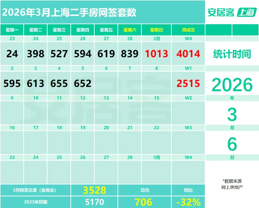 >新房462套,二手房652套!3月5日上海网签数据出炉!