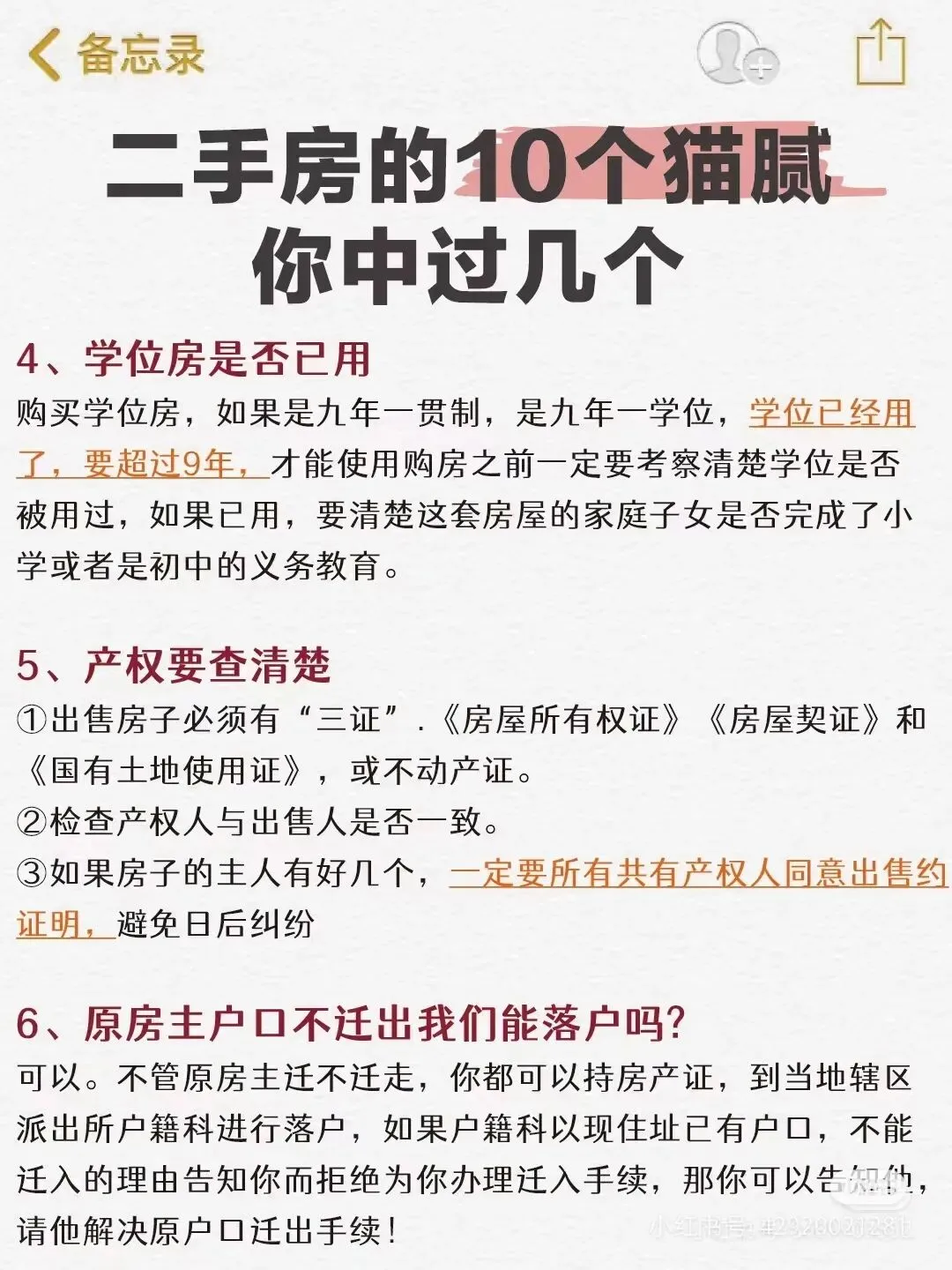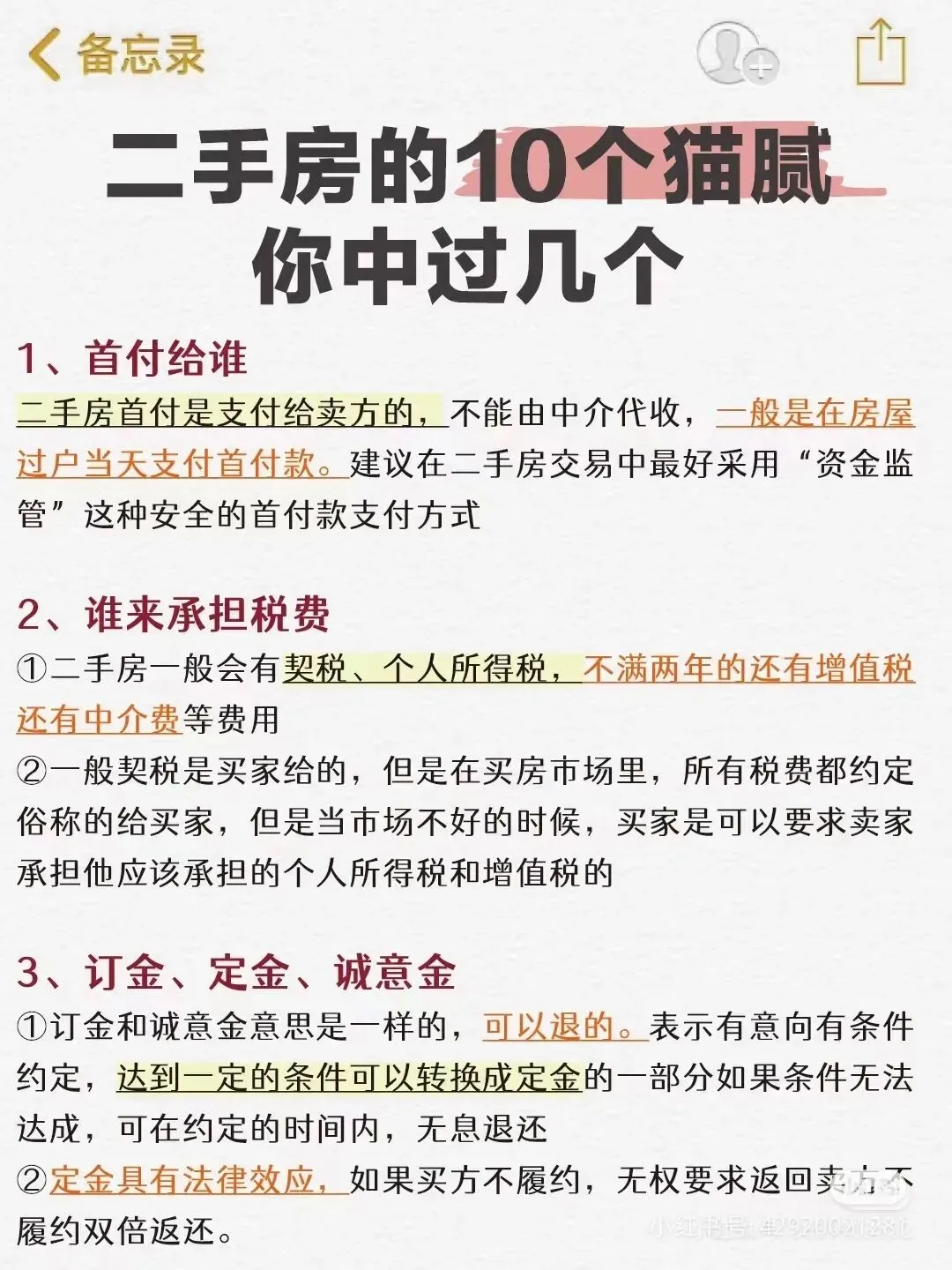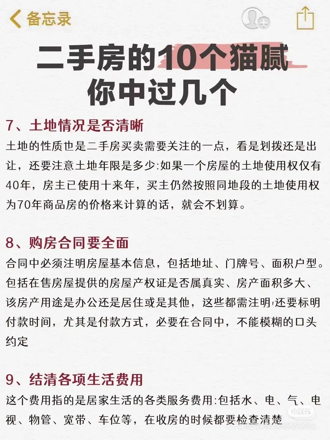 买房是门技术活,特别是买二手房,因为政策五花八门.看的人云里雾里,具体不展开讲,当下全民高负债的行情.在购房时可能会出现一些未知情况,除了常规买卖合同之外的细节条款也应该特别注意,为保障买房人的合法权益。小编总结如下,供大家参考: