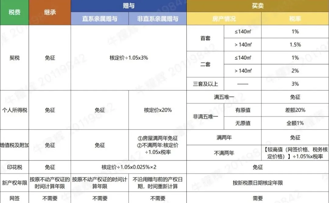 三、继承、赠与以及买卖在不同场景下谁税费成本低?
