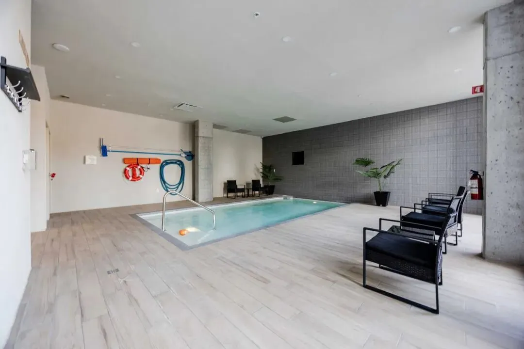 大楼配套室内加热地下泳池,桑拿房,设备齐全的健身房,瑜伽舞蹈室,室内休闲空间。