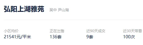 根据贝壳信息显示,弘阳上湖雅苑目前136套挂牌出售,挂牌均价21541元/平。