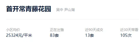 根据贝壳信息显示,胥江城市花园目前132套挂牌出售,挂牌均价15479元/平。