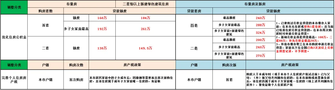 (一)首套住房。个人公积金最高贷款额度调整为100万元,家庭公积金最高贷款额度调整为200万元。缴交补充公积金的,个人公积金最高贷款额度增加20万元,家庭公积金最高贷款额度增加40万元。 (二)第二套住房。个人公积金最高贷款额度调整为80万元,家庭公积金最高贷款额度调整为160万元。缴交补充公积金的,个人公积金最高贷款额度增加20万元,家庭公积金最高贷款额度增加40万元。 多子女家庭购买首套及第二套住房的,公积金最高贷款额度均可上浮20%。缴存人家庭购买符合规定的二星级及以上新建绿色建筑住房的,公积金最高贷款额度上浮15%保持不变。同时符合以上两种情形的,上浮比例可叠加计算,即公积金最高贷款额度上浮35%。 注:外省市缴存职工在本市购房申请公积金贷款,家庭名下在全国已有2次及以上公积金贷款记录,不予贷款。 |