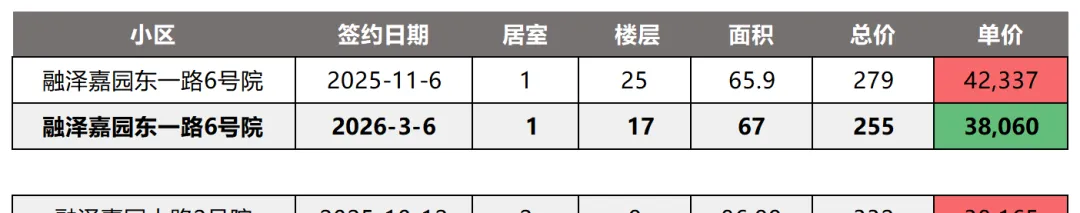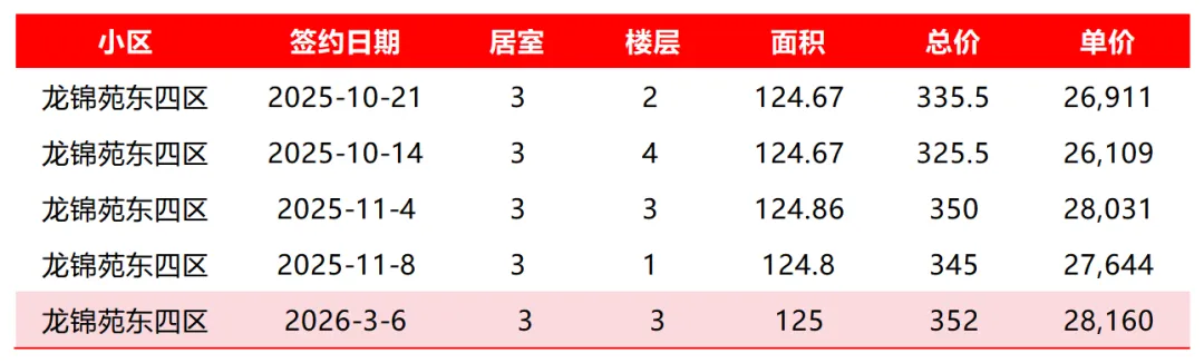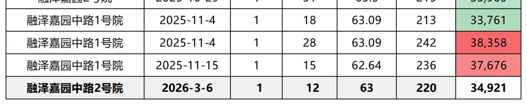 下面是部分成交数据,本月初(3.1-3.6)较去年四季度的对比: