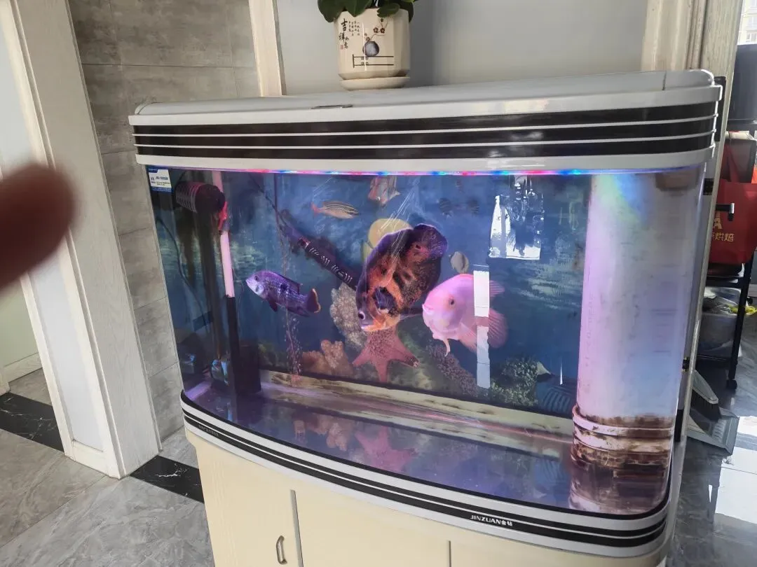 低价出售一米鱼缸和鹦鹉鱼地图鱼玉面皇冠各一条有需要的联系,13643413435