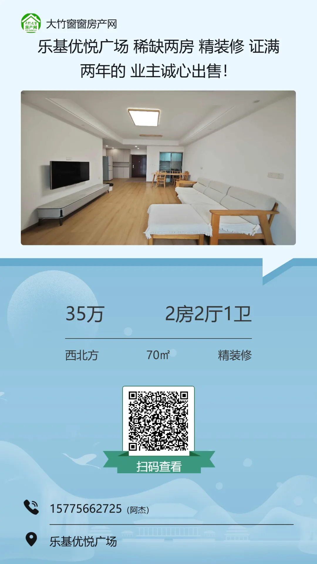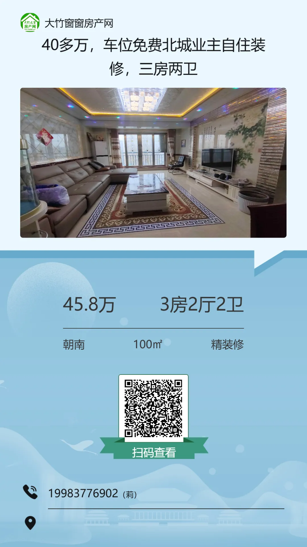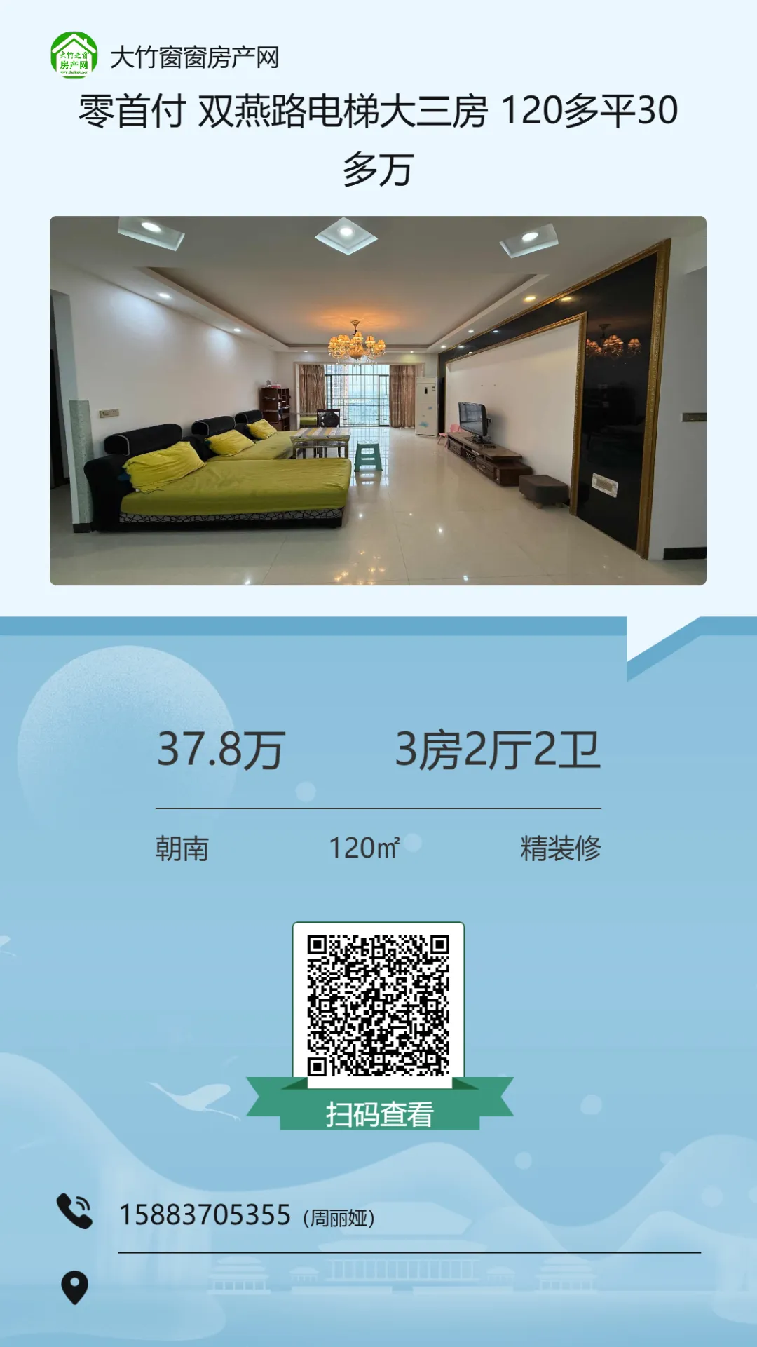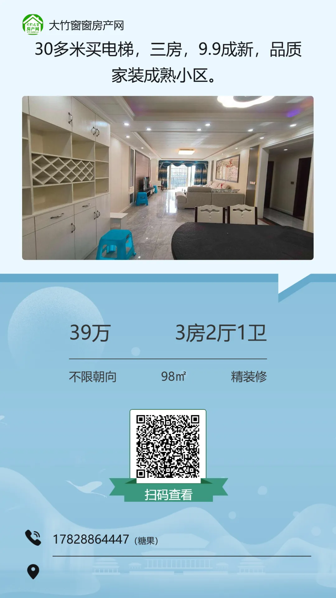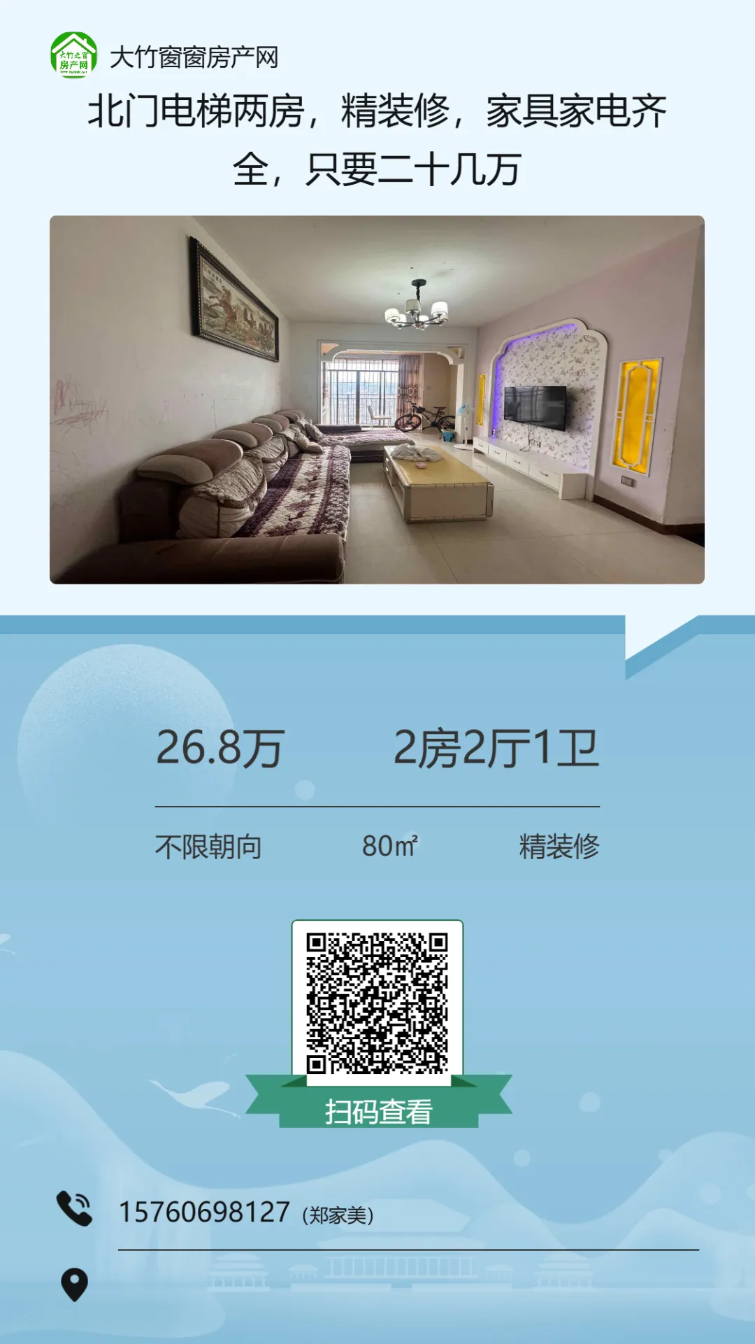 【大竹房产】这套精装房,总价十多万,证齐可按揭