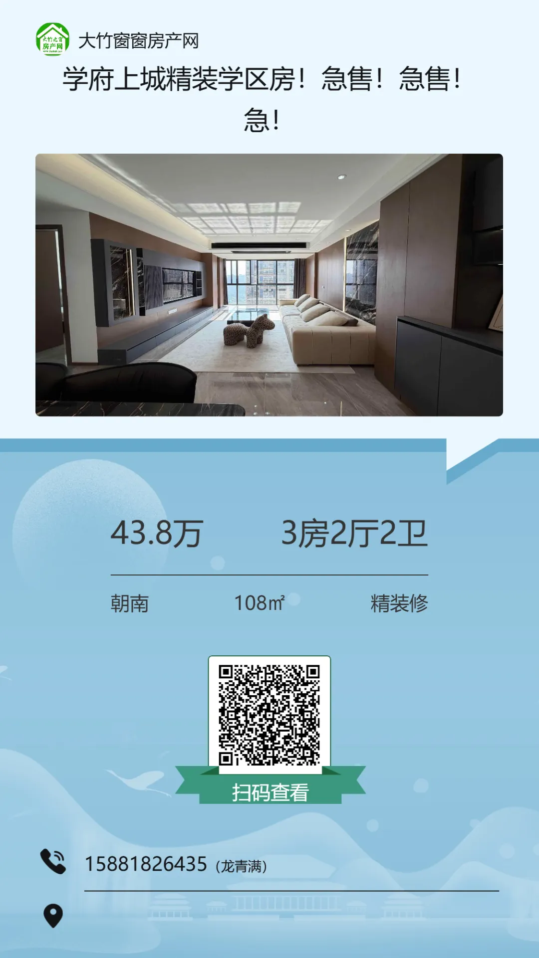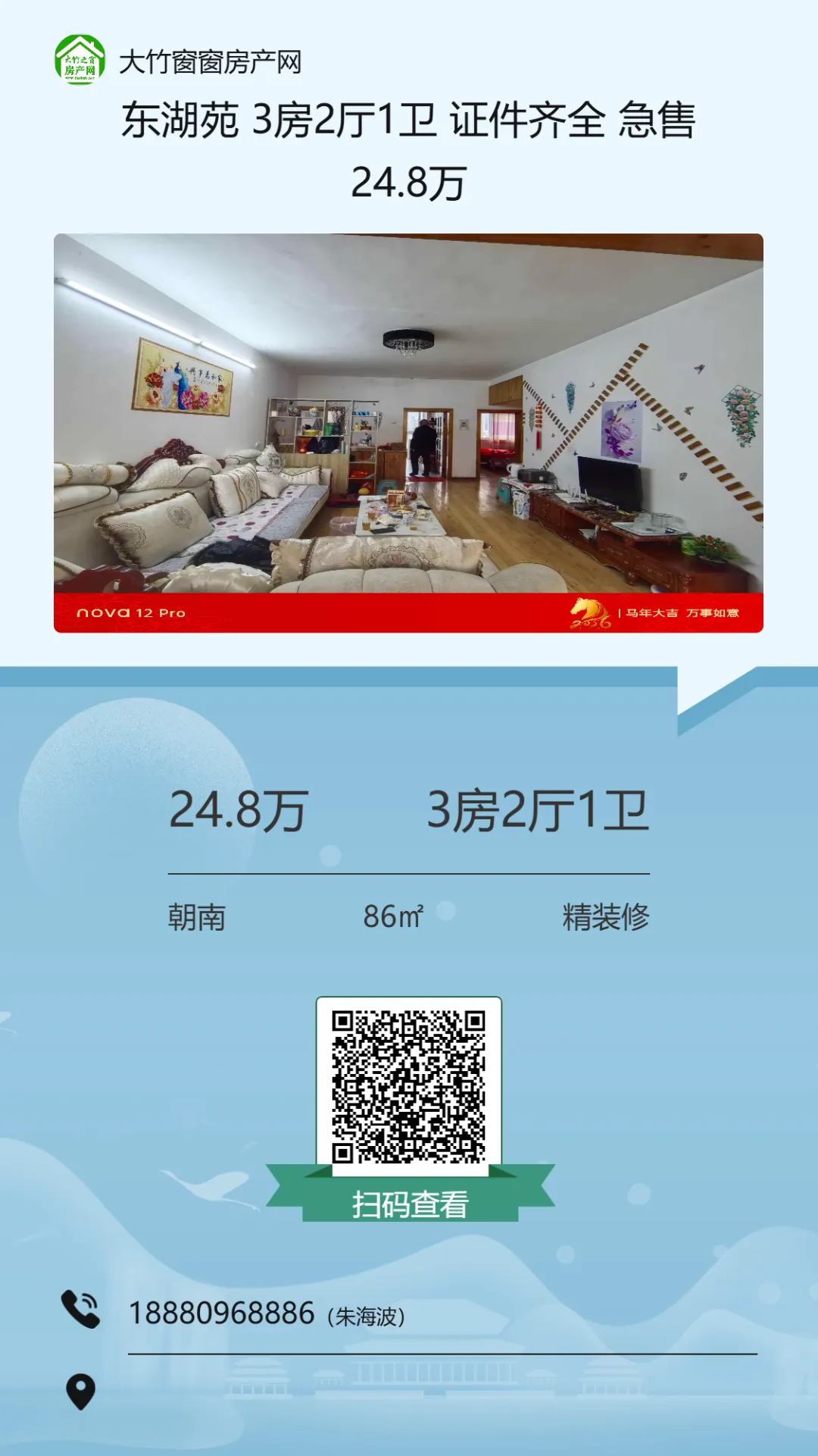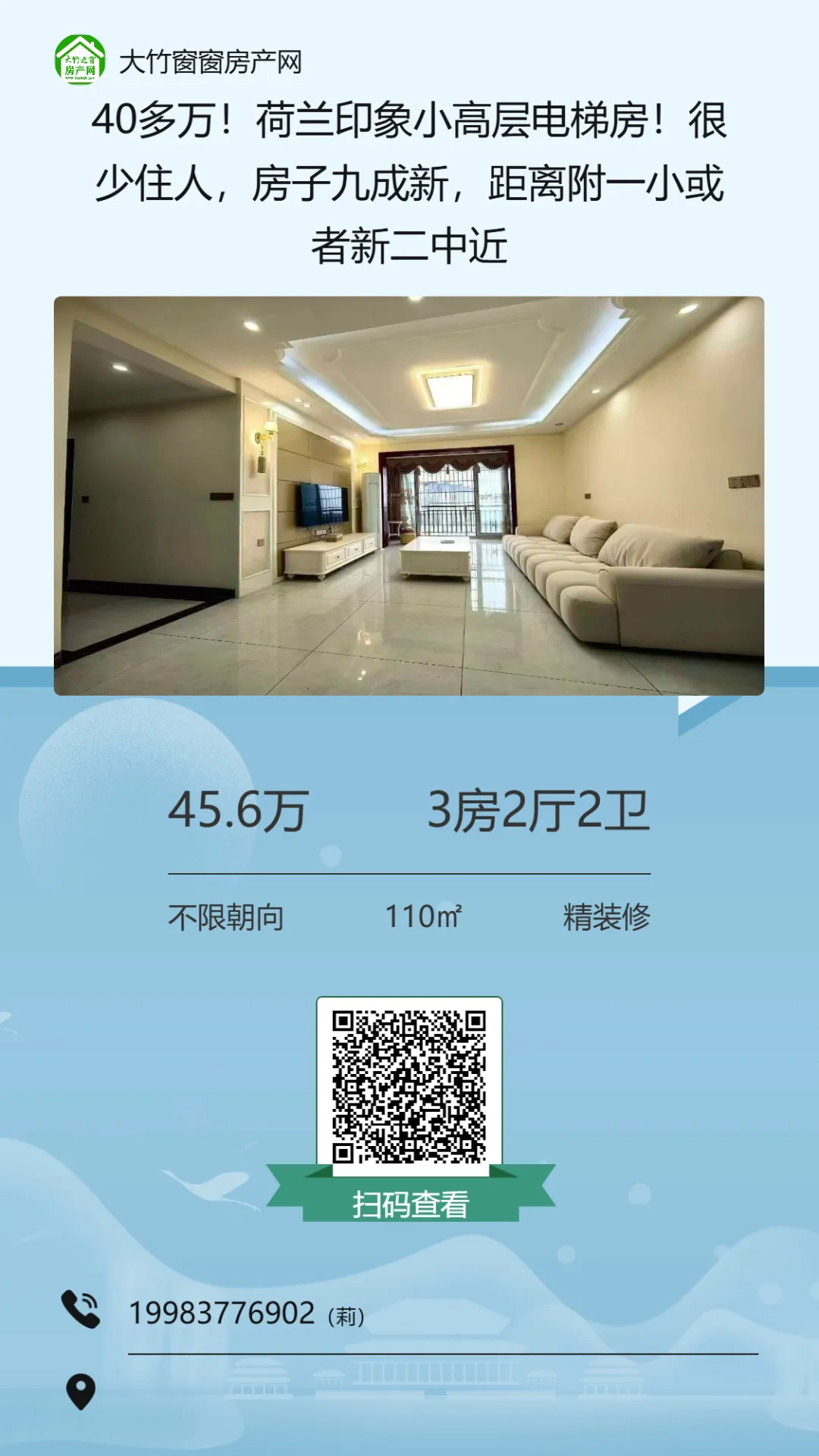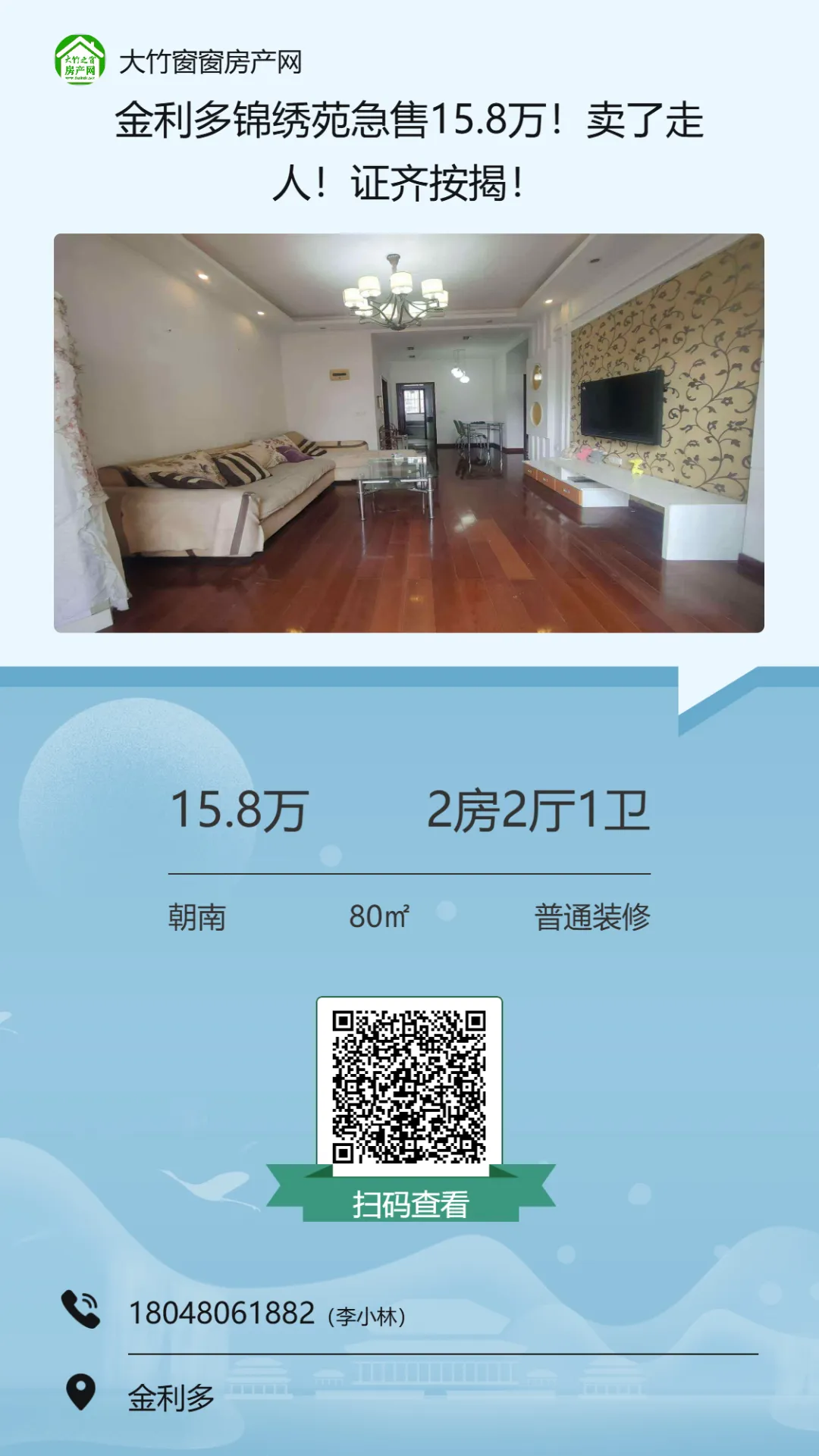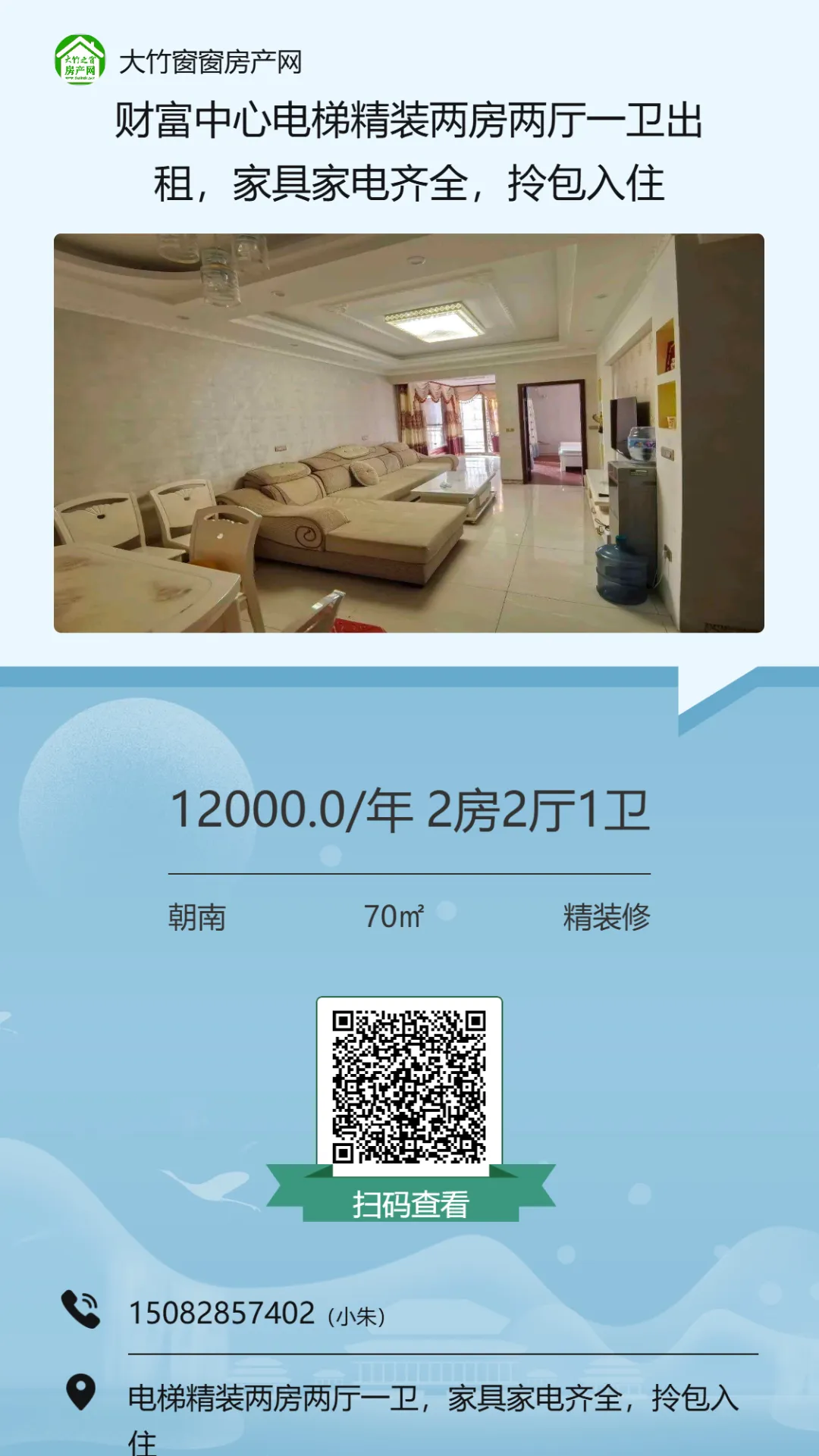 【大竹房产】这套精装房,总价十多万,证齐可按揭