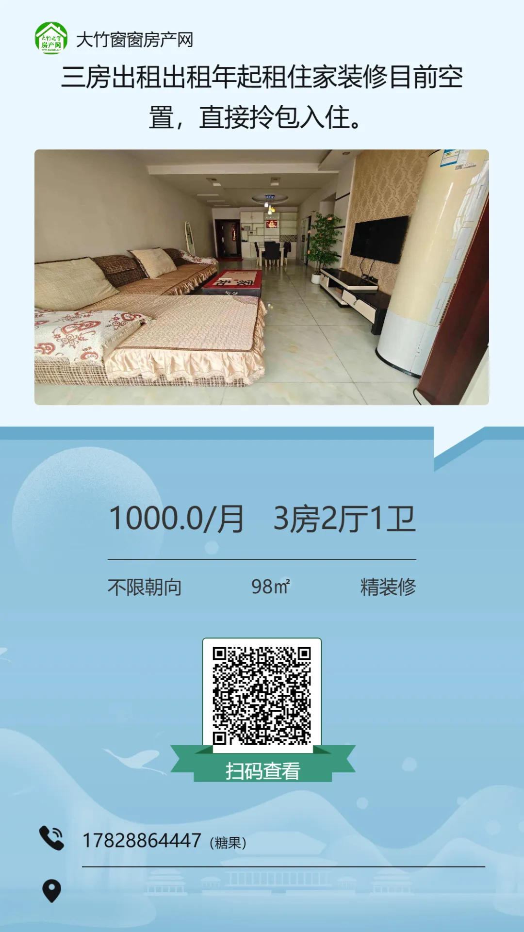 >【大竹房产】这套精装房,总价十多万,证齐可按揭