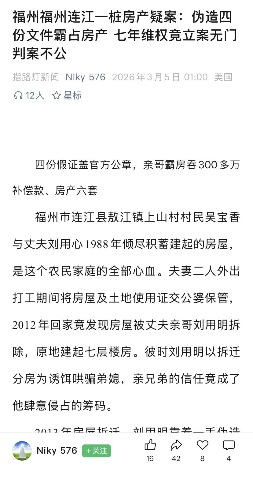 吴宝香夫妇从未与刘某明有过任何房产交易,所谓的购房转款凭证,不过是日常借贷的还款记录,全村村民的联名证明、娘家的土地承包证明,都能佐证房产的合法归属,而刘某明的侵占行为,从拆除房屋到伪造文件,每一步都肆无忌惮,从2019年至今,七年时间里,吴宝香夫妇走遍多个部门,手握铁证却投诉无门,刘某明等人凭借伪造的文件霸占房产、侵吞巨额补偿款,却始终逍遥法外,而受害者却只能在层层推诿与不公对待中,承受着无家可归、求告无门的痛苦。