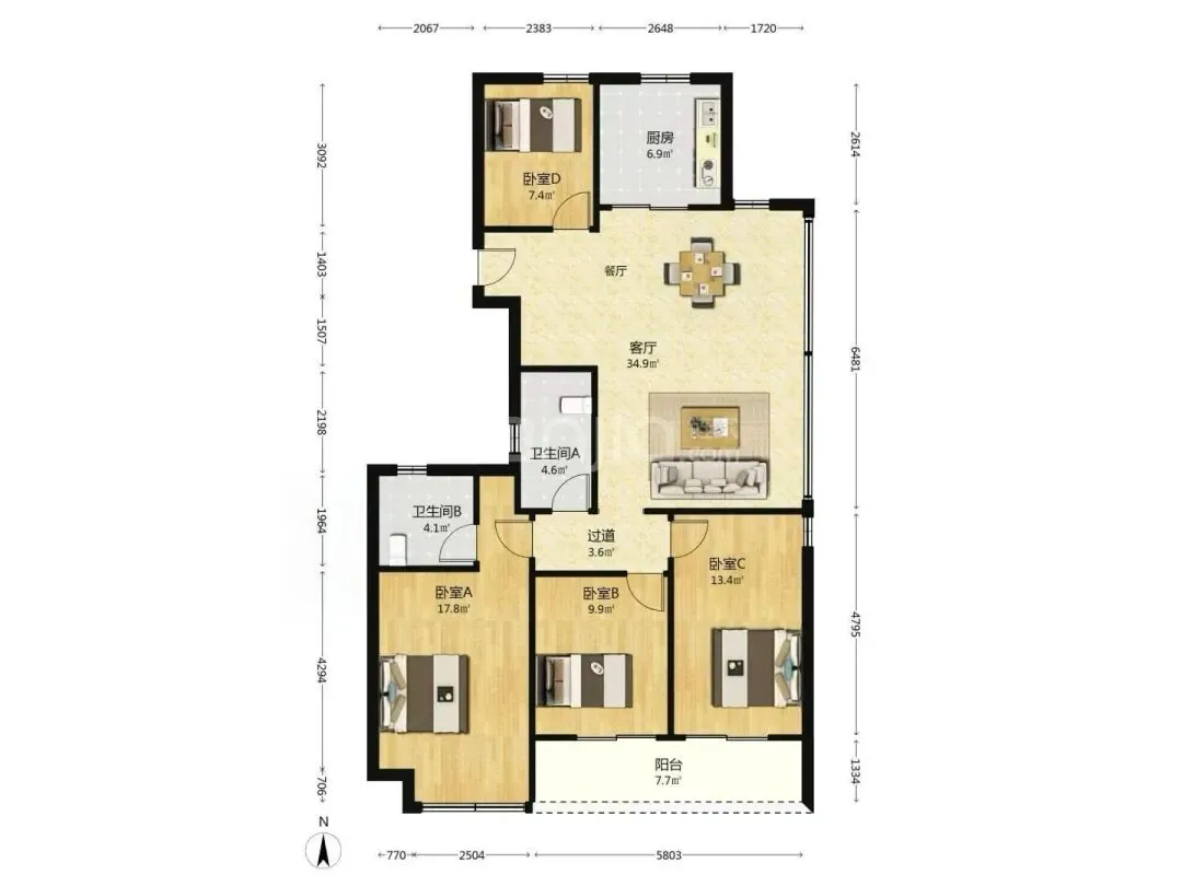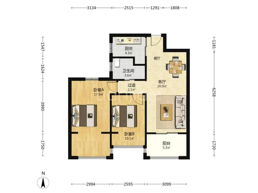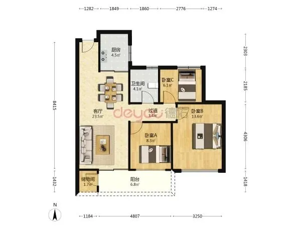 面积89.2方,3房1卫户型,总价320万地铁6号线枸桔弄站