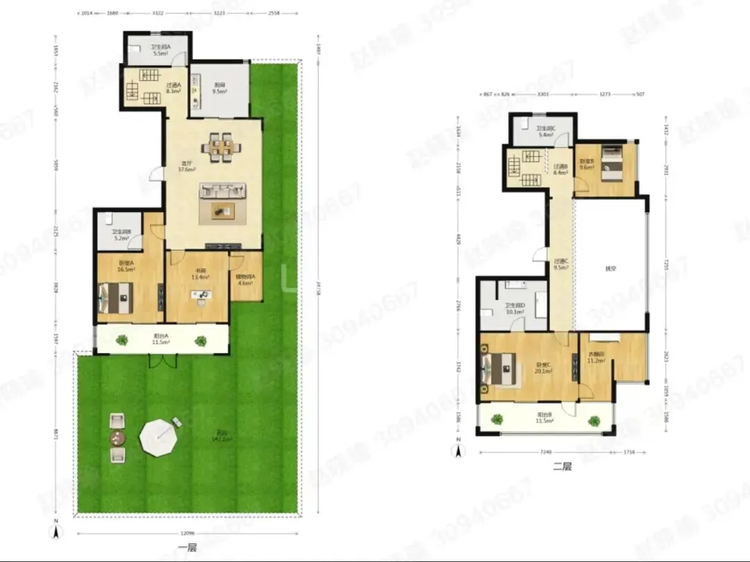 一楼带花园,产证240方 花园142方自住装修可做5房,文博、北干🎒挂牌1000+