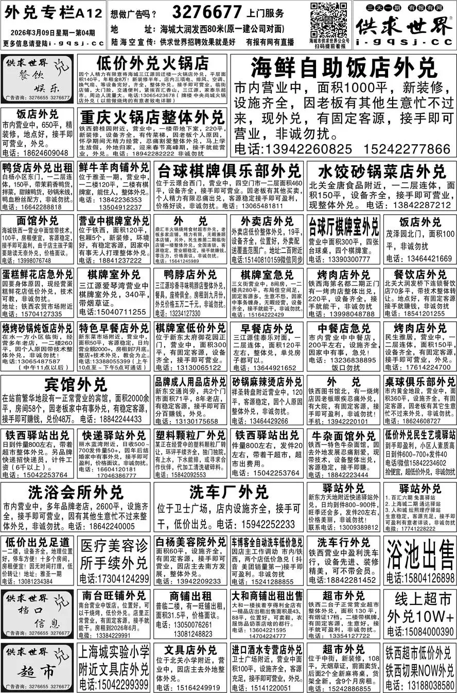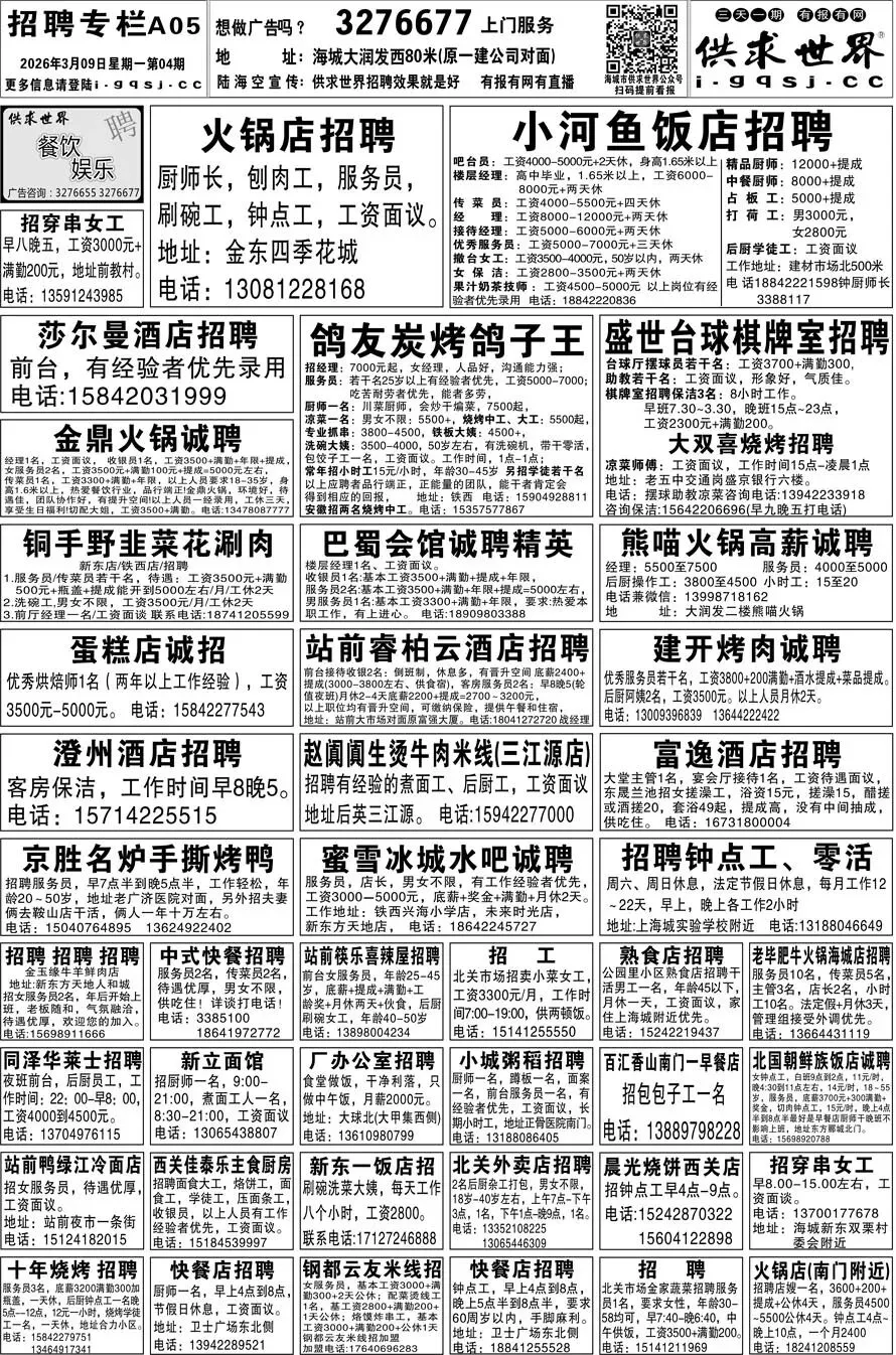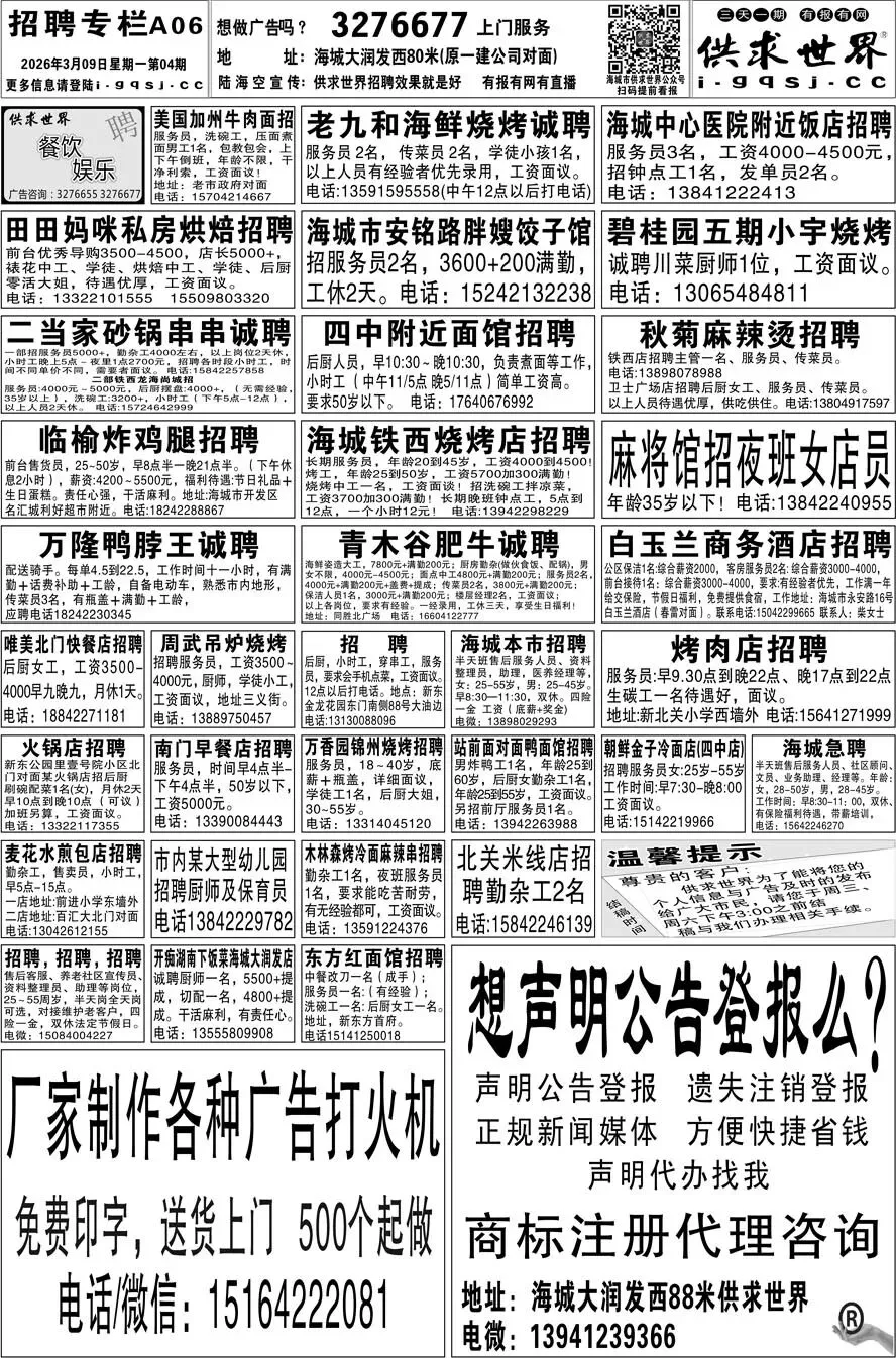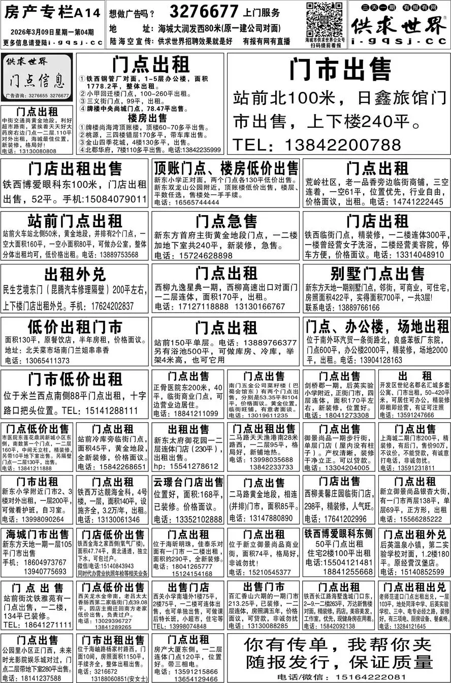 第4期《海城供求世界电子报》招聘房产等信息更新了,提前24小时抢先阅读(2026.3.9)