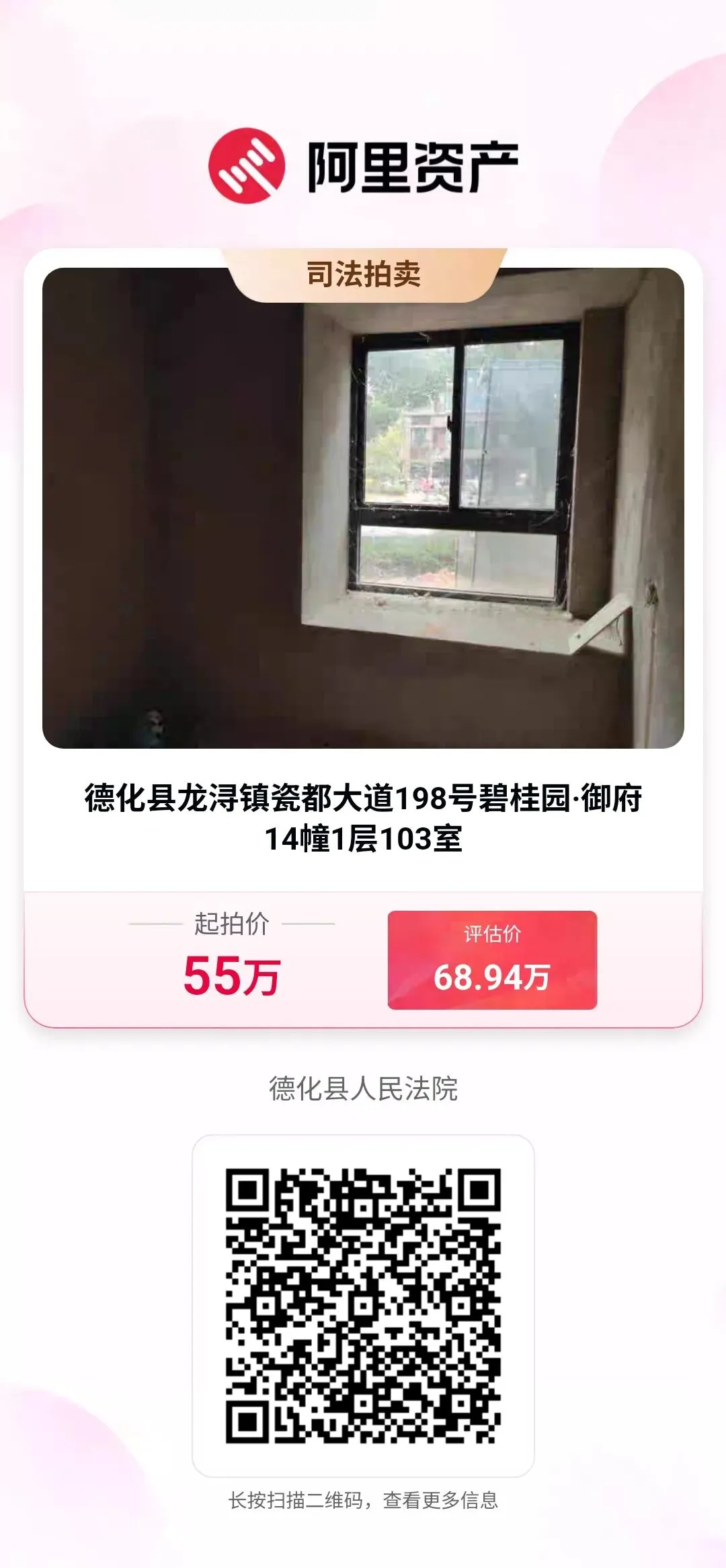 德化碧桂园·御府这套房产仅55万起拍!毛坯房,地段佳!你赶紧看看........