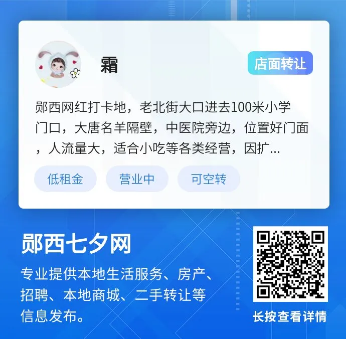 郧西便民网成立于2016年,是郧西论坛旗下专业的分类信息及郧西商家展示平台,提供便民信息,房产买卖,二手信息,店铺转让等多种生活分类信息。郧西黄页专注于为商家提供店铺线上展示,便于网友更快的找到需要的店铺。目前日均流量达2000余人次,有效信息量长期维持在6000多条,累计浏览量达800多万。