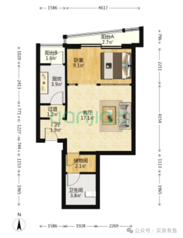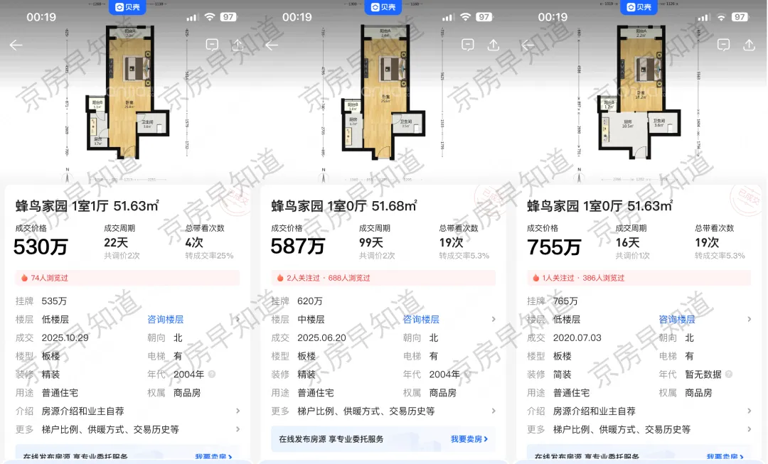 蜂鸟家园在2026年3月成交了一套51㎡的1居室,成交价442万。同户型在2021年1月成交价是933万,降价了491万,幅度53%。