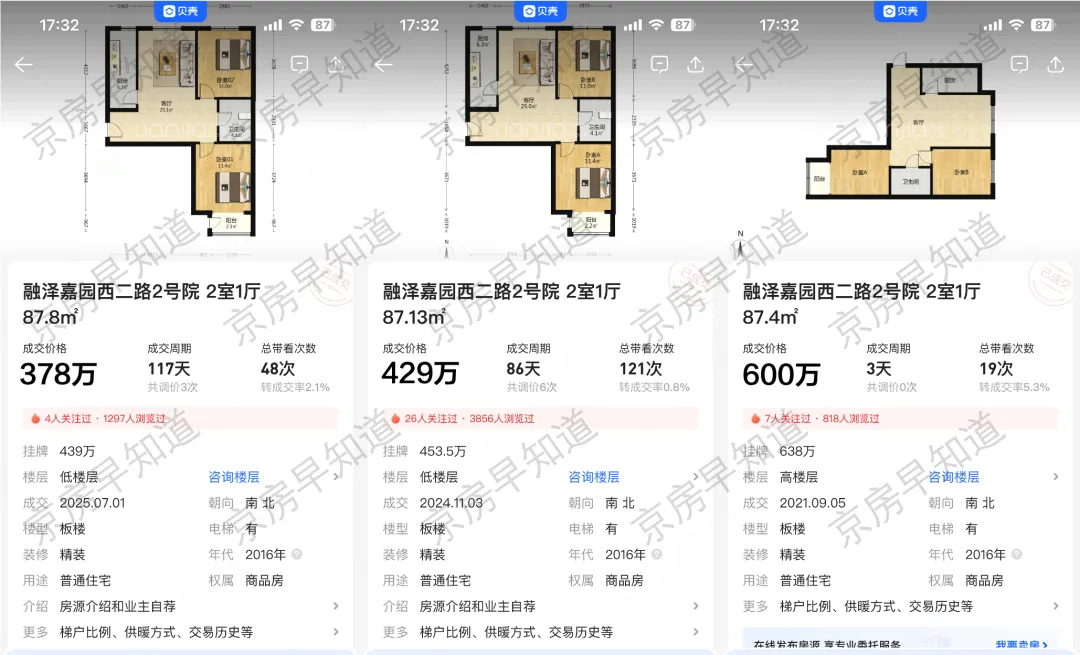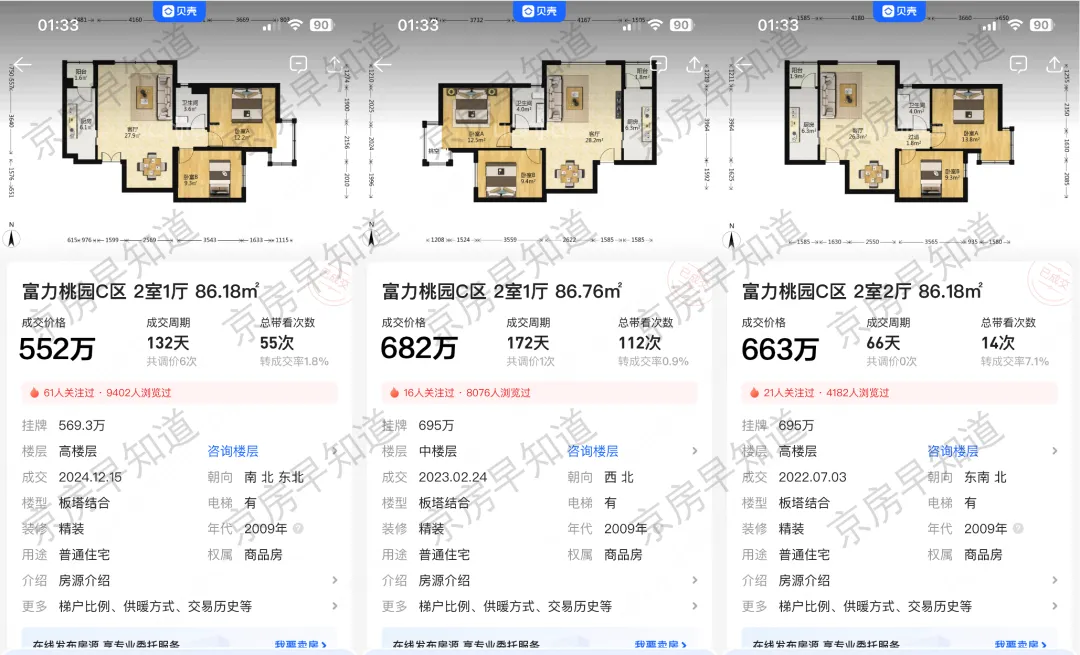 比如昌平南的融泽嘉园2号院,114㎡的2居室最新成交价是435万,而同户型在2026年1月成交价是390万,上涨了45万,涨幅12%。