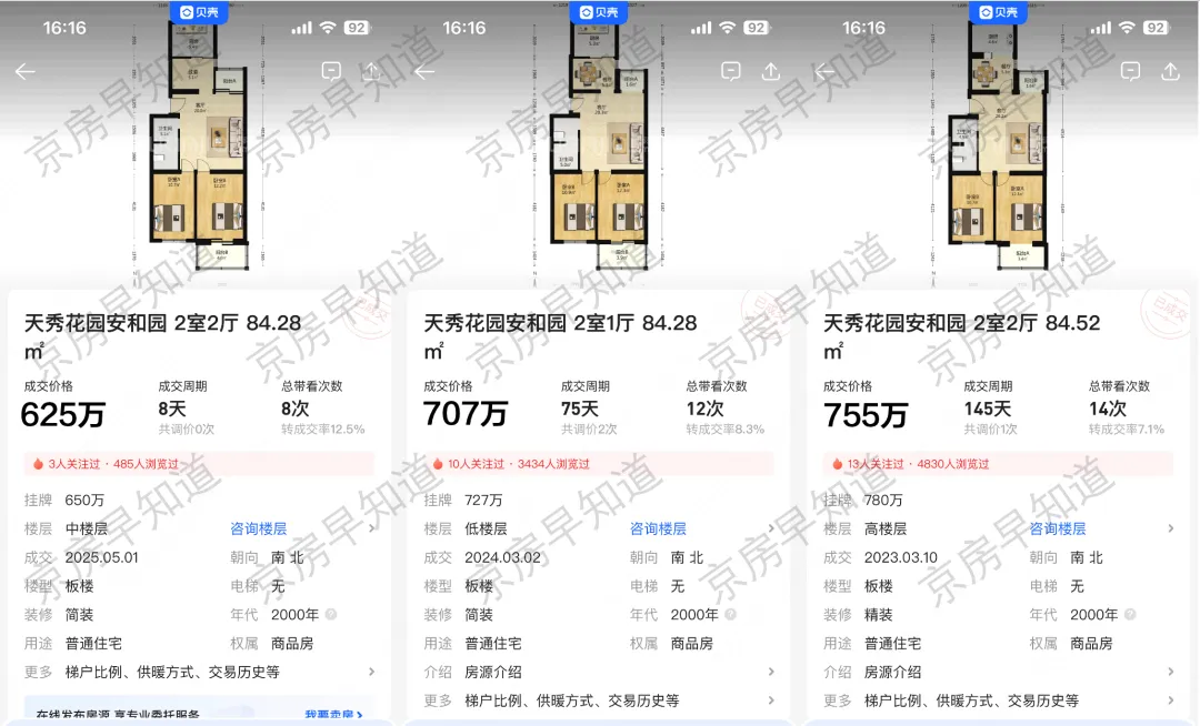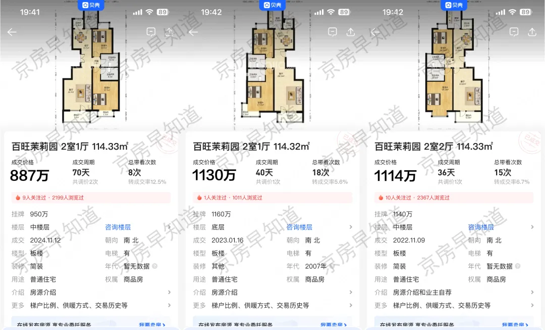 二手房挂牌量降低直接影响供需关系,除了那些品质比较差的老破小,依然需要靠降价求生,北京那些核心地段的品质不错,二手房源溢价率越来越强,一些好户型的房源都不好找了,甚至清河橡树湾这样的,之前跌到谷底的小区,现在成交价开始回升了。