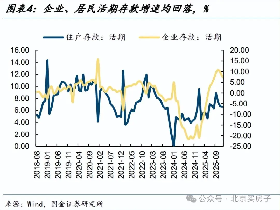 2025年12月,居民活期存款增速只有6.6%,回落0.1%,这个数据就说明当前居民花钱的动力不足。