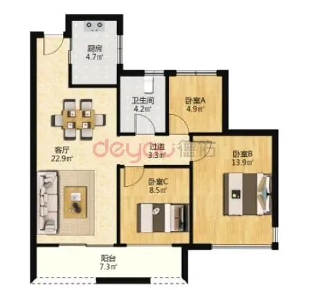 滨江物业,面积89.44方,送软装3房1卫,总价279万